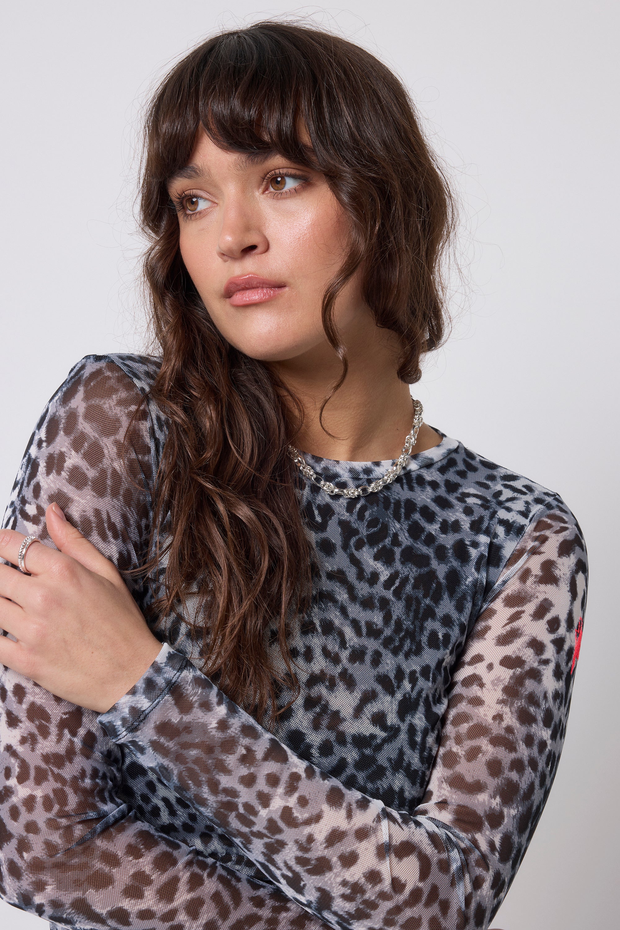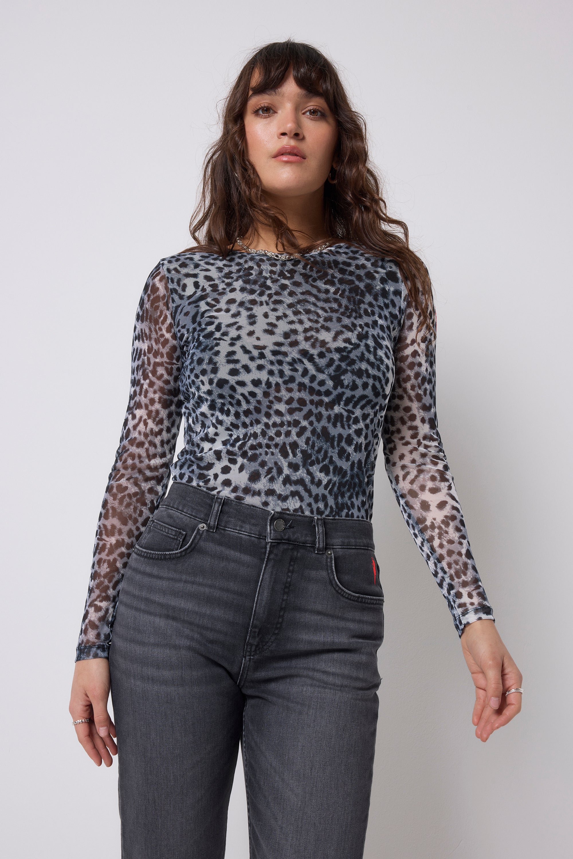 Make a statement in our mesh cheetah print top. Complete with a round neck and long sleeves, this comfortable piece will be the perfect addition to your wardrobe. We'll be pairing ours with dark denim and trainers for a casual yet stylish outfit.