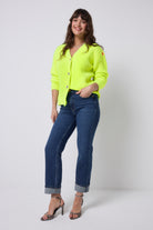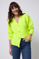 - Cardigan has a slightly relaxed fit in a soft yarn