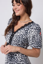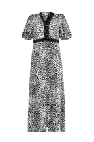 Bold and beautiful, this grey cheetah with lace trim dress will make a joyful addition to your wardrobe. Featuring a universally flattering V-neck, short puff sleeves and a classic midi length, style yours with trainers for the day and heeled boots for evening plans.