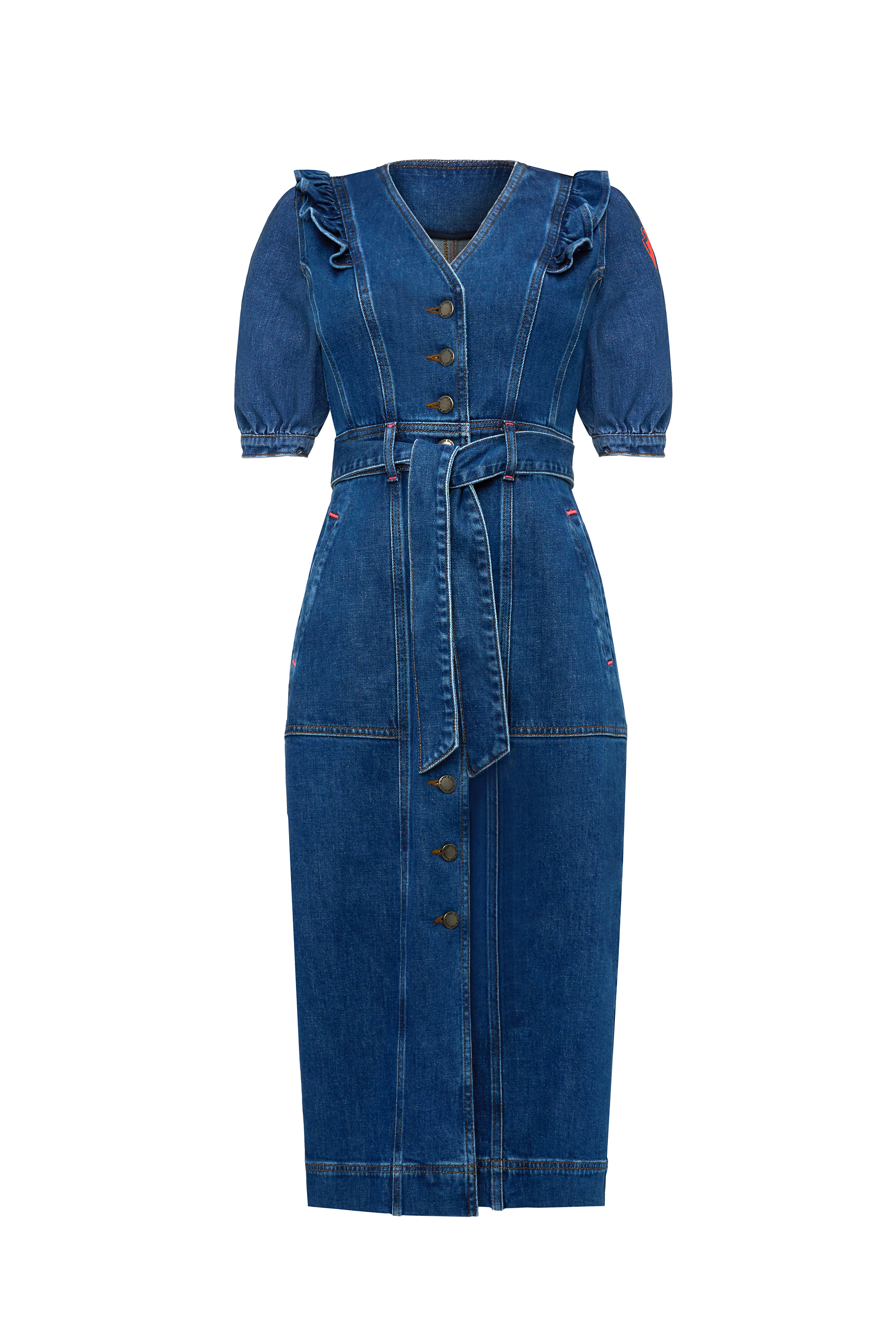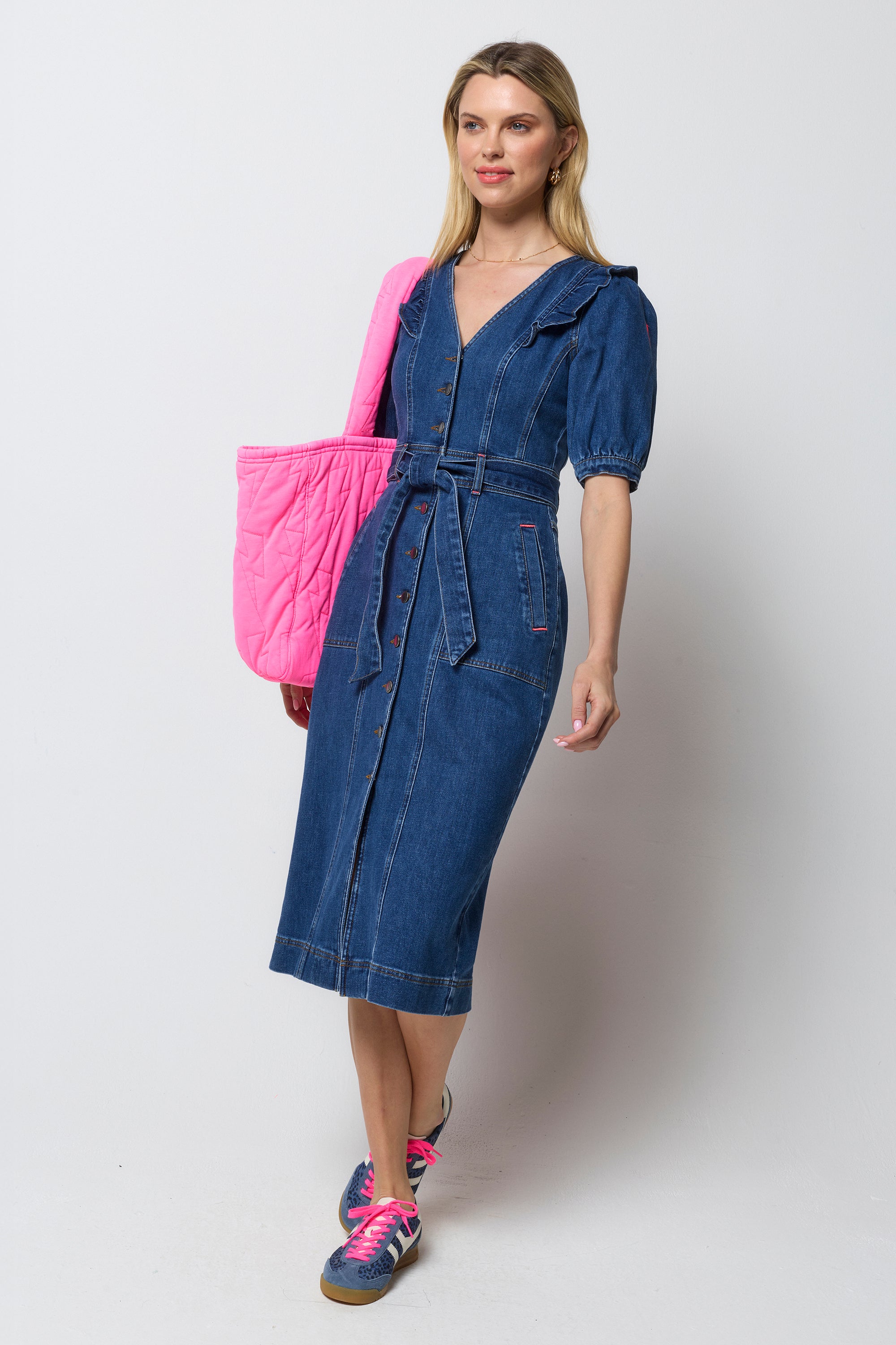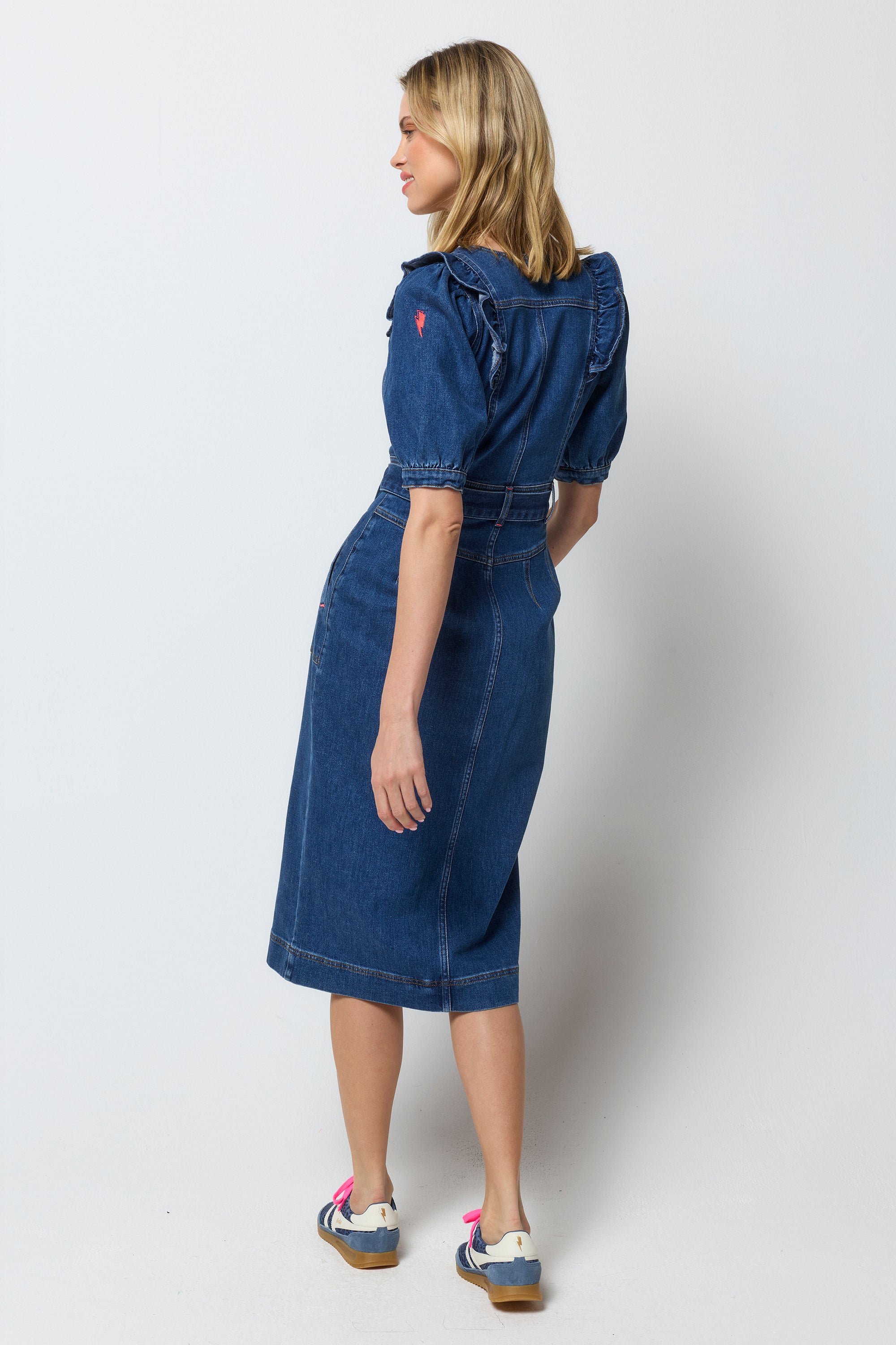 Indigo Frill Sleeve Midi Denim Dress