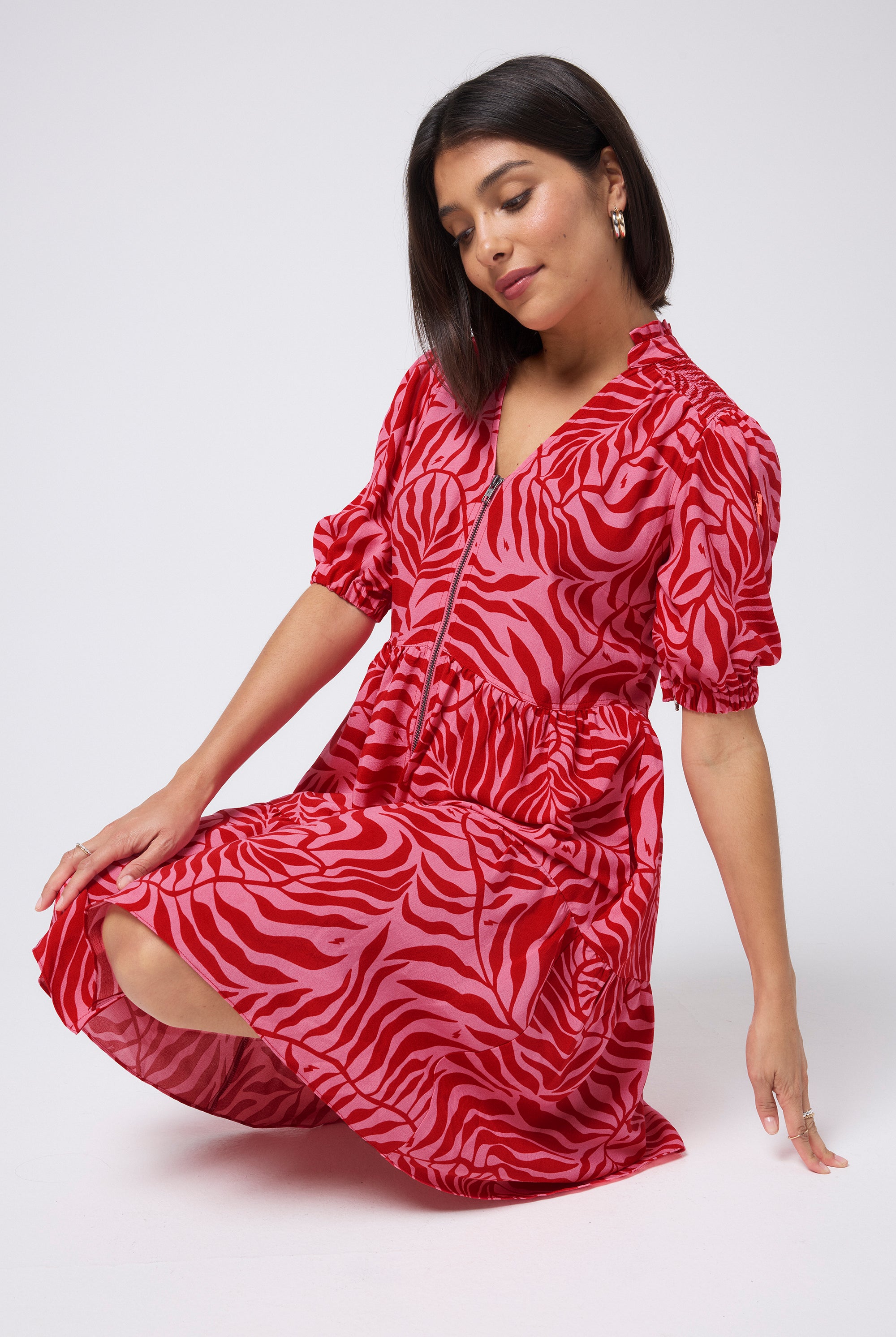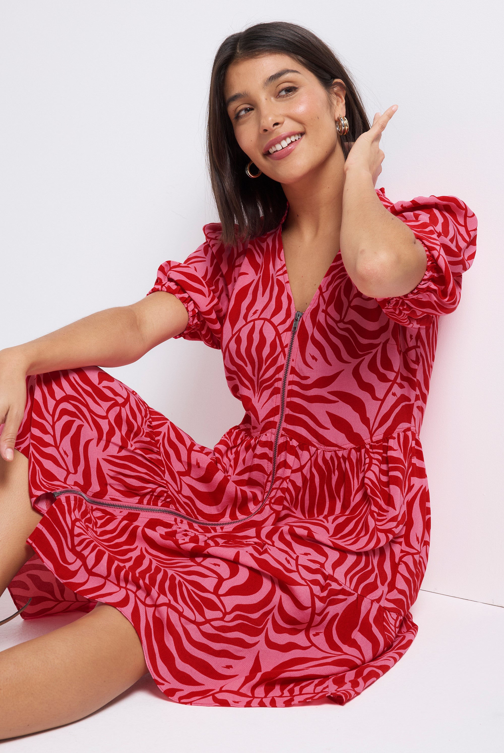 A vibrant collection of statement-making dresses featuring our signature superpower infused leopard and lightning bolt print. Made with EcoVero™ Viscose, the most sustainable viscose with the least environmental impact.