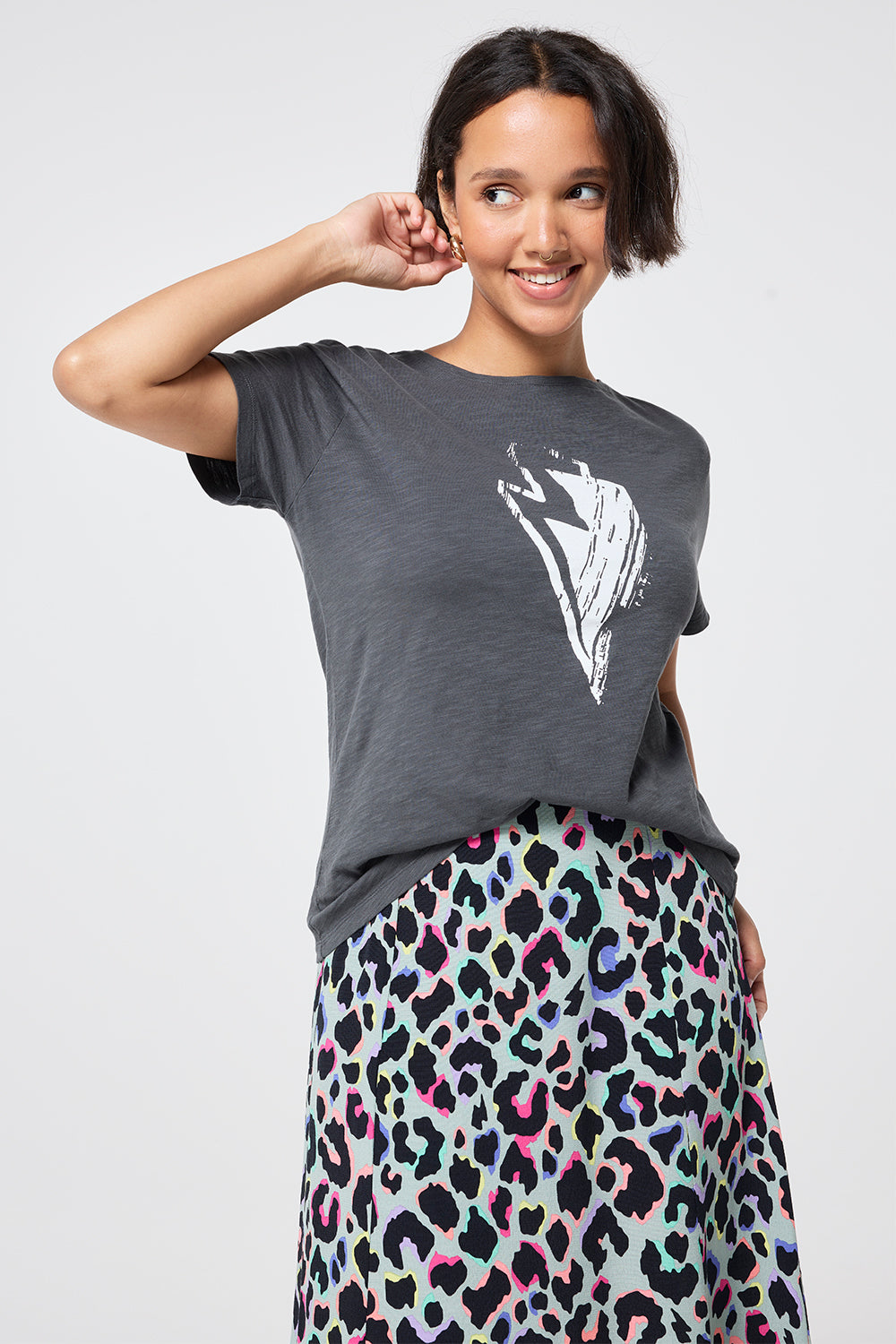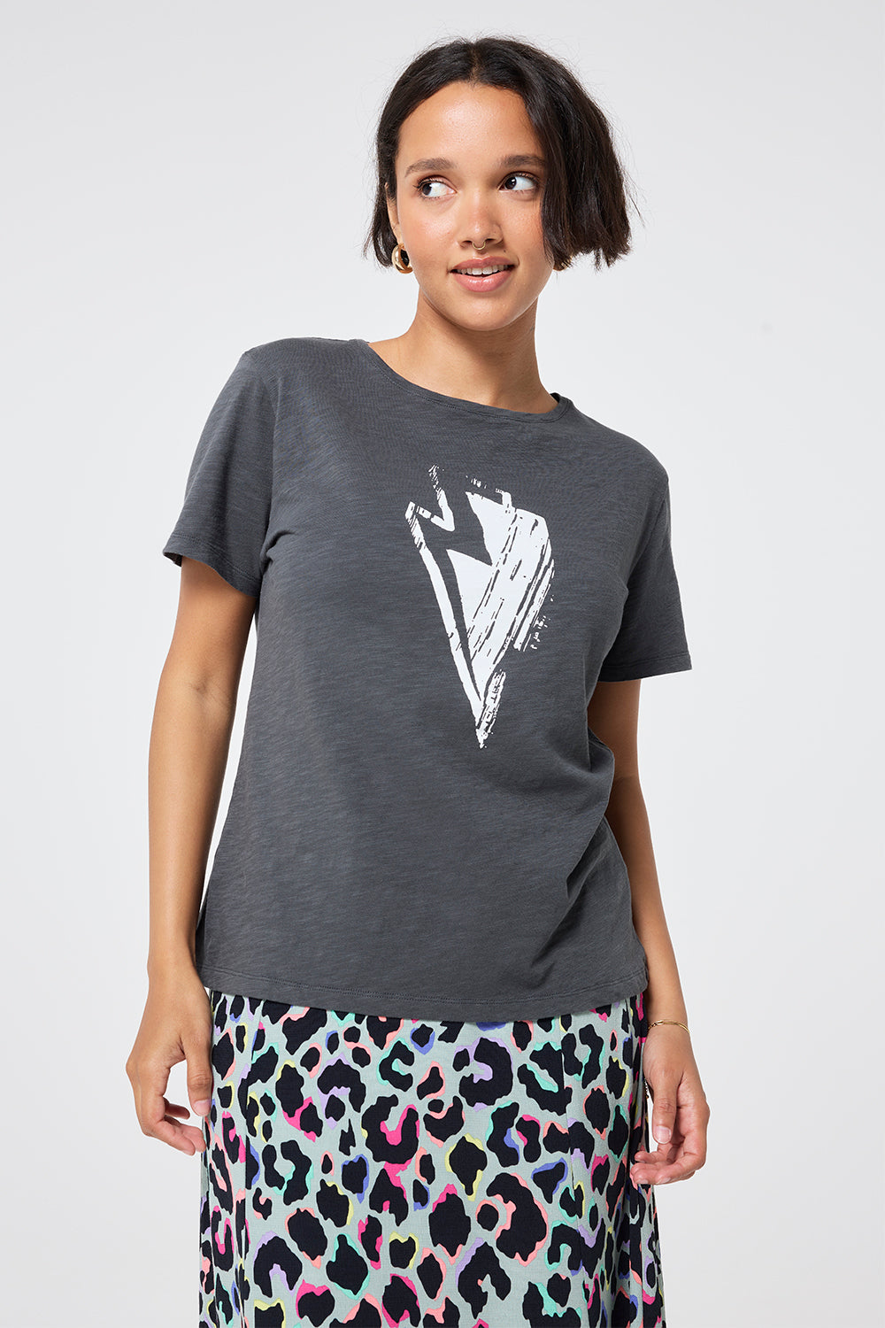 Our grey slogan print T-shirt with white lightning bolt on the front will become your off-duty staple. It's stylish, comfy and filled with superpowers.