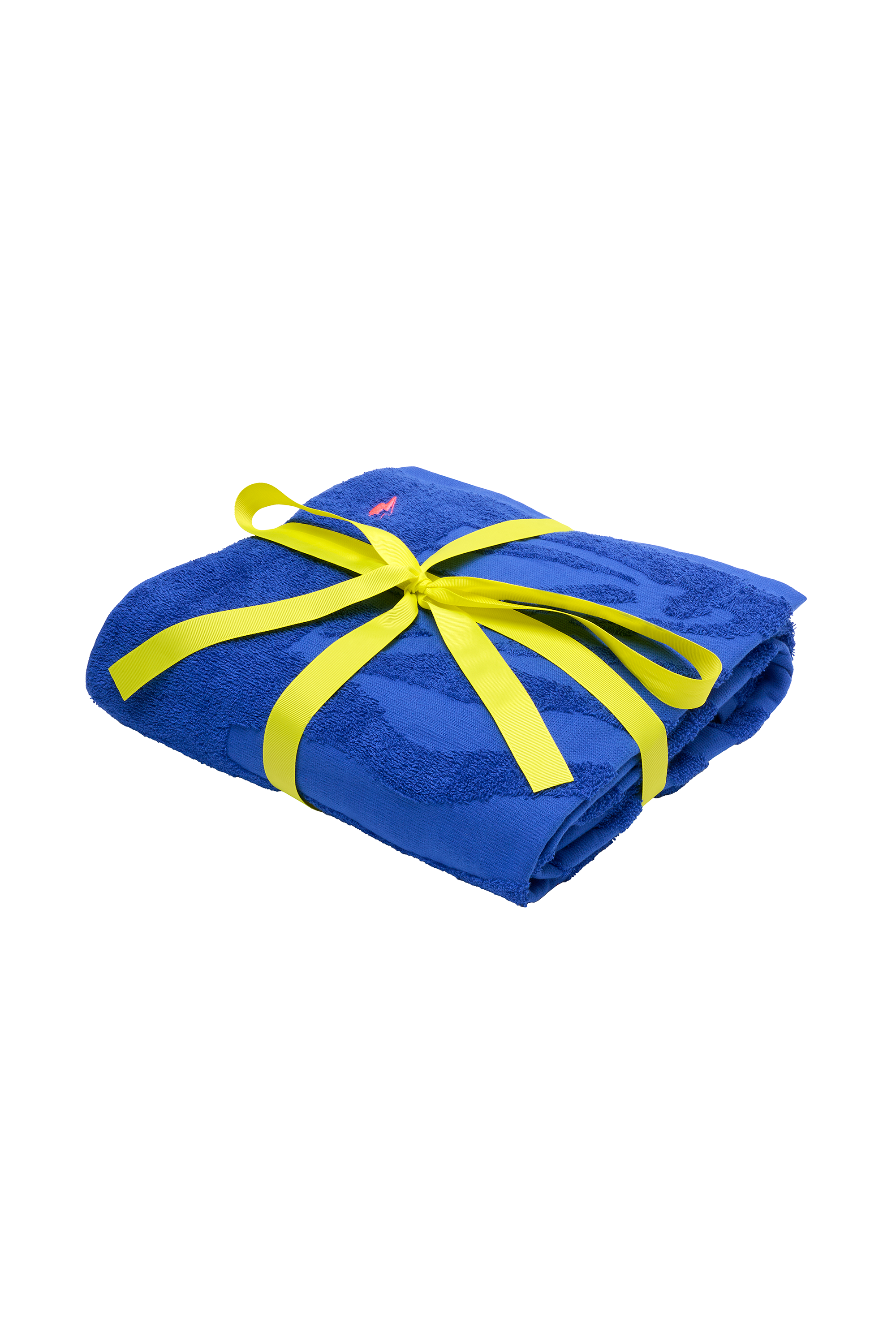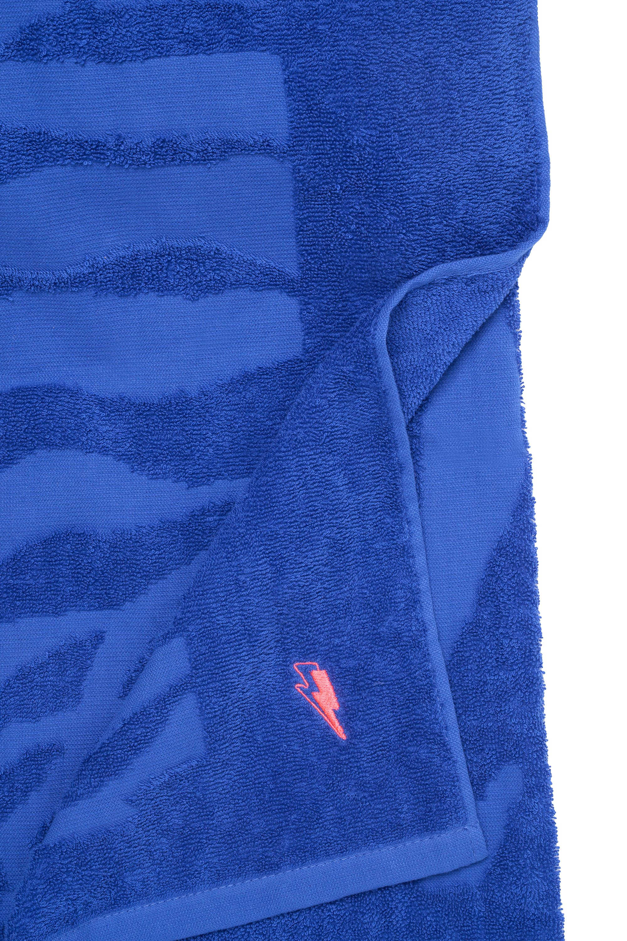 Bring some brightness to the beach with our super-soft cotton beach towel, with jacquard palm design and our signature neon pink embroidered bolt.