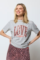 Our grey marl T-shirt with love graphic print will become your off-duty staple. It's stylish, comfy and filled with superpowers. Complete the look with a pair of flattering Scamp & Dude jeans.