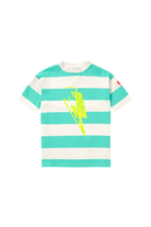 Chilled days call for this stylish green and white stripe T-shirt with yellow bolt detail. Made from super soft, organic cotton to keep them cool, while the comfortable loose fit lets them move around freely.