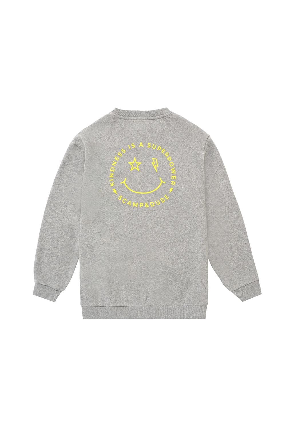 Kids will love this playful grey marl logo and yellow smiley face print relaxed sweatshirt. It's oversized fit makes it easy to layer, while dropped shoulder seams add to the relaxed feel, it's all they need for day-long style and comfort.