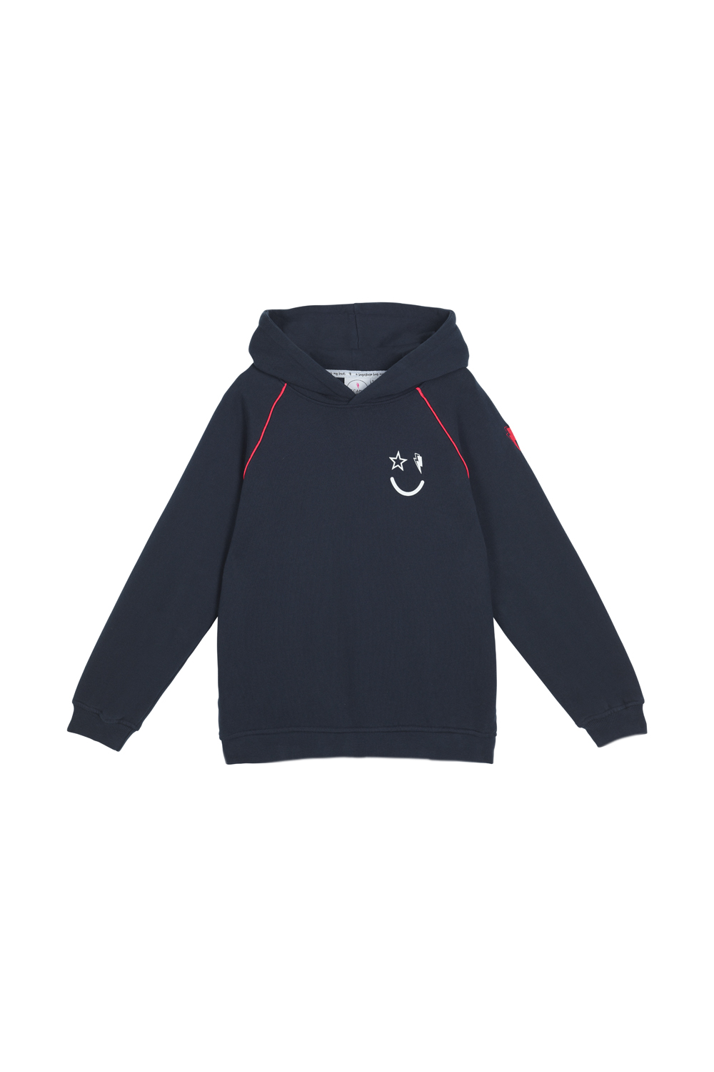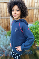 Neon pink embroidered Superpower Button on the sleeve to provide kids with a burst of their chosen superpower when they need it most. Slogan ‘a superhero has my back’ is written along the inner neckline.