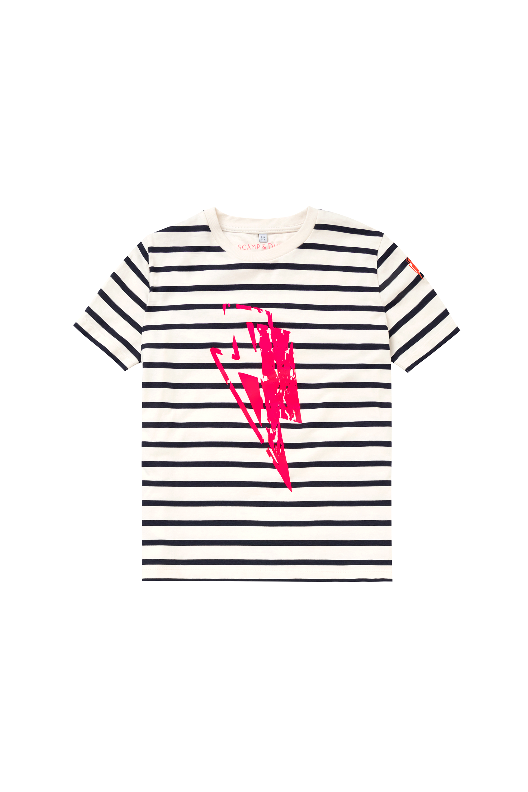 Chilled days call for this stylish ivory with navy stripe T-shirt with glitch bolt. Made from super soft, organic cotton to keep them cool, while the comfortable loose fit lets them move around freely.