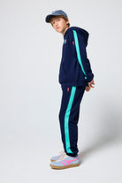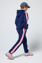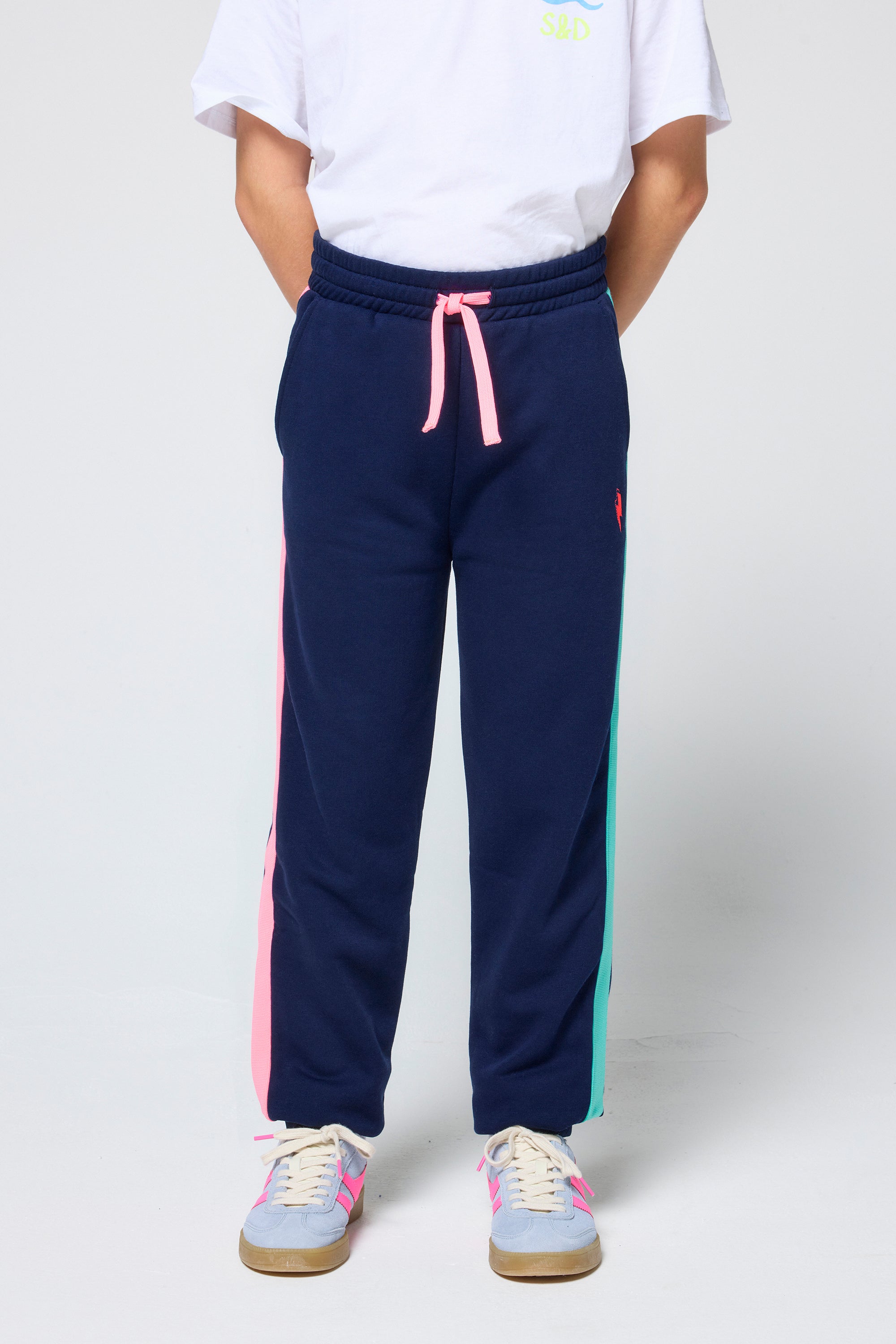 These new kids navy joggers with neon pink and turquoise colourblock will make weekend dressing that bit cosier.