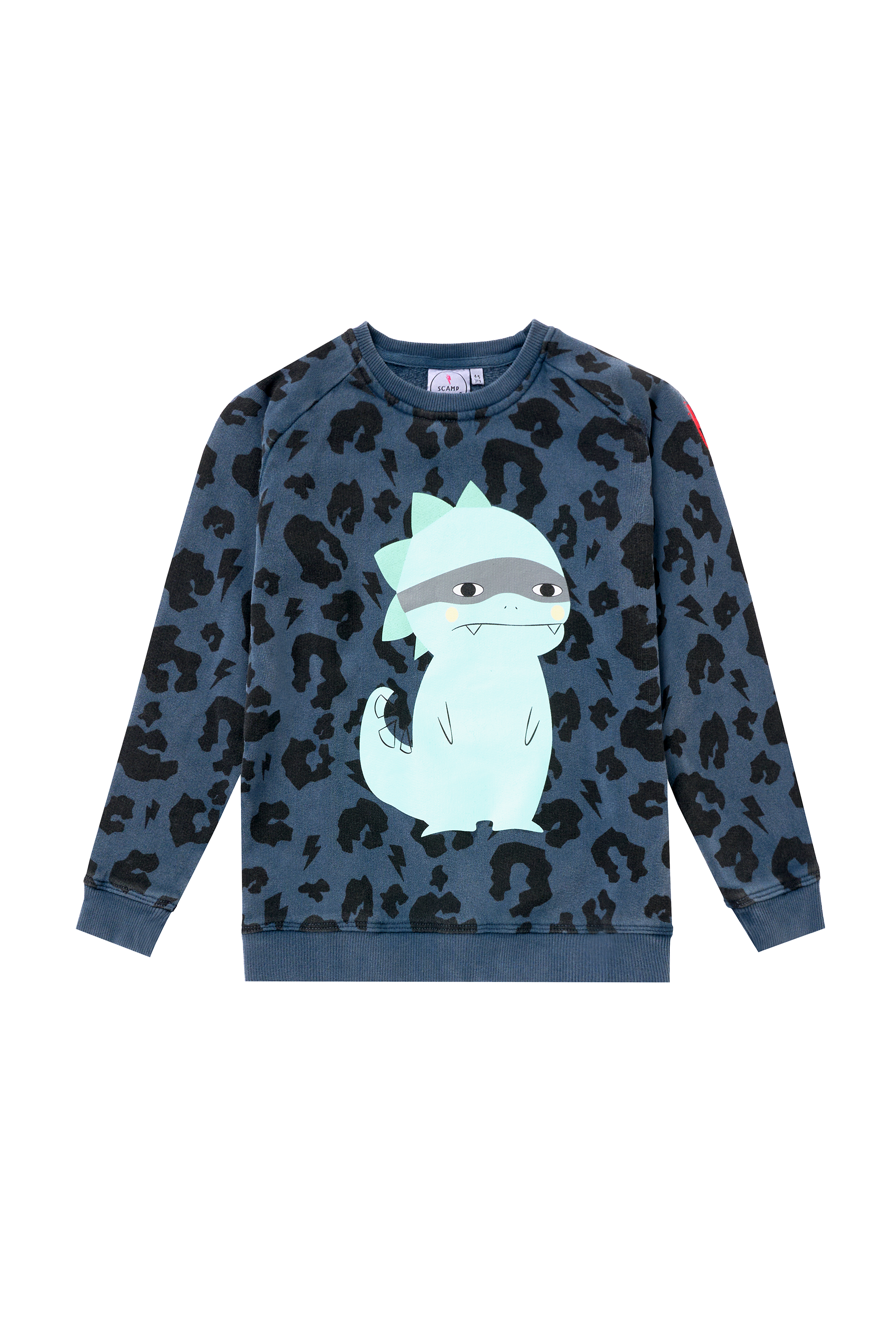 Give their wardrobe a new-season refresh with one of our must-have sweatshirts. Kids will love this playful navy with black leopard and lightning bolt print classic sweatshirt. Featuring a dino graphic print, it's all they need for day-long style and comfort.