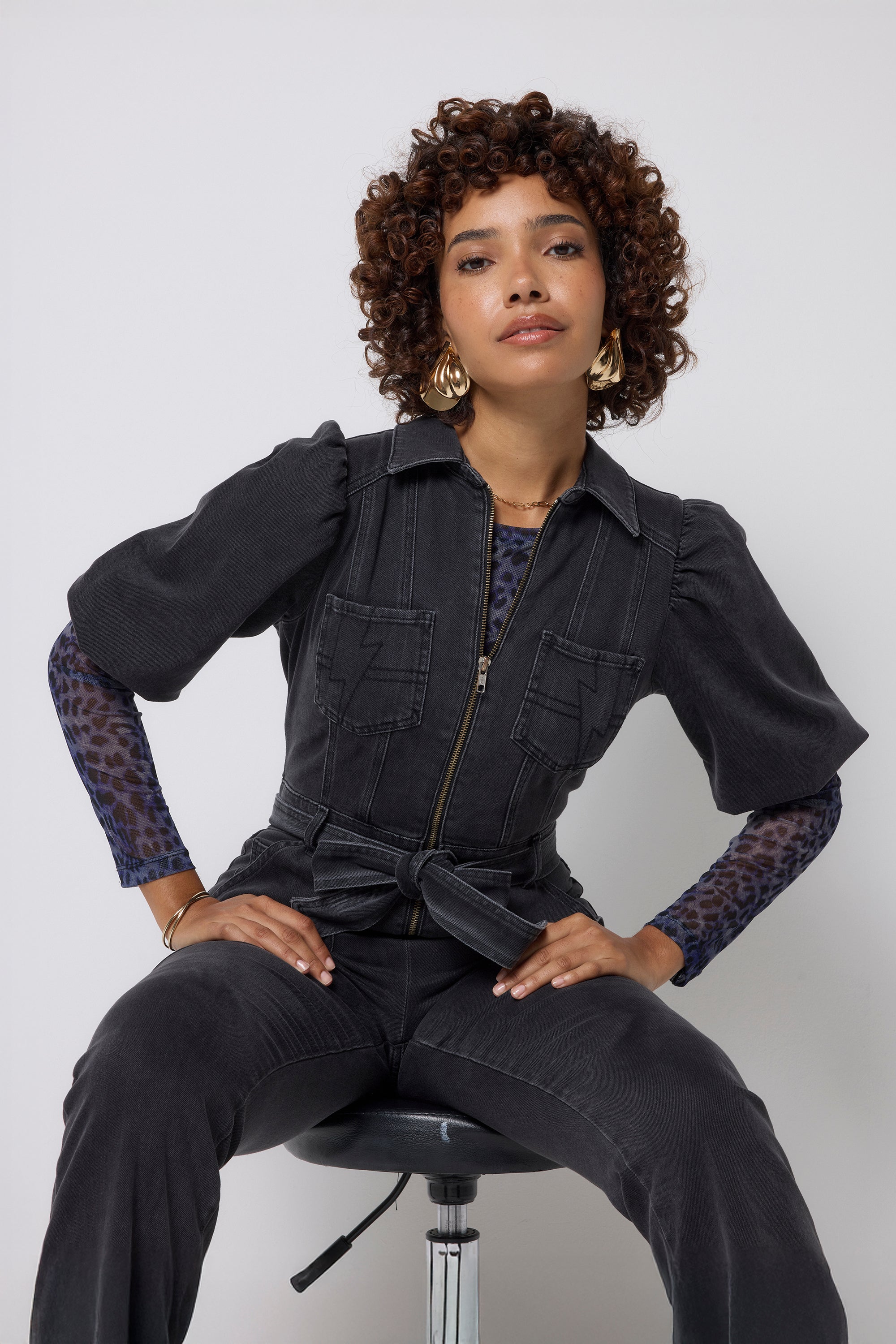 - Signature neon pink embroidered lightning bolt on the sleeve