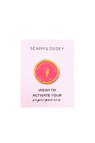 Small pin, big superpowers. Superpower Button for when you need extra superpowers. Perfect for jazzing up your coats, bags, scarves – anything that needs a little extra Scamp & Dude energy.