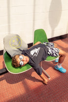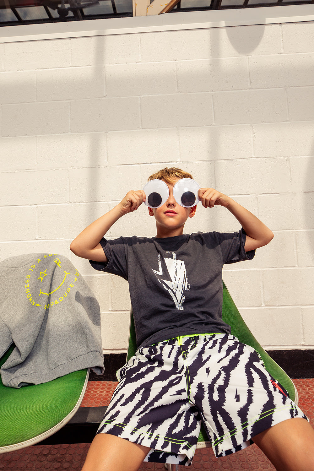Playful, practical and full of personality, our kids slate grey T-shirt with signature white lightning bolt on the front is perfect for the beach or summer adventures closer to home.