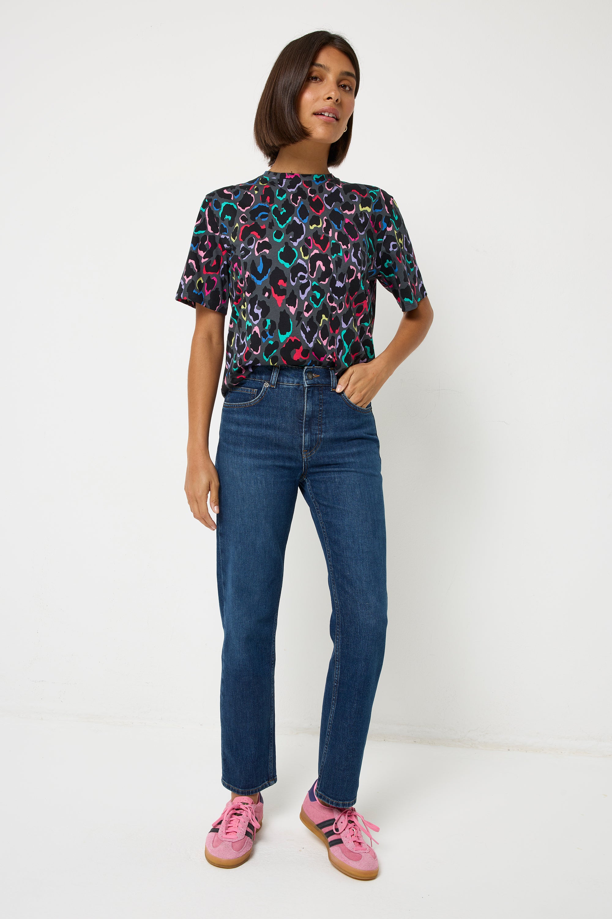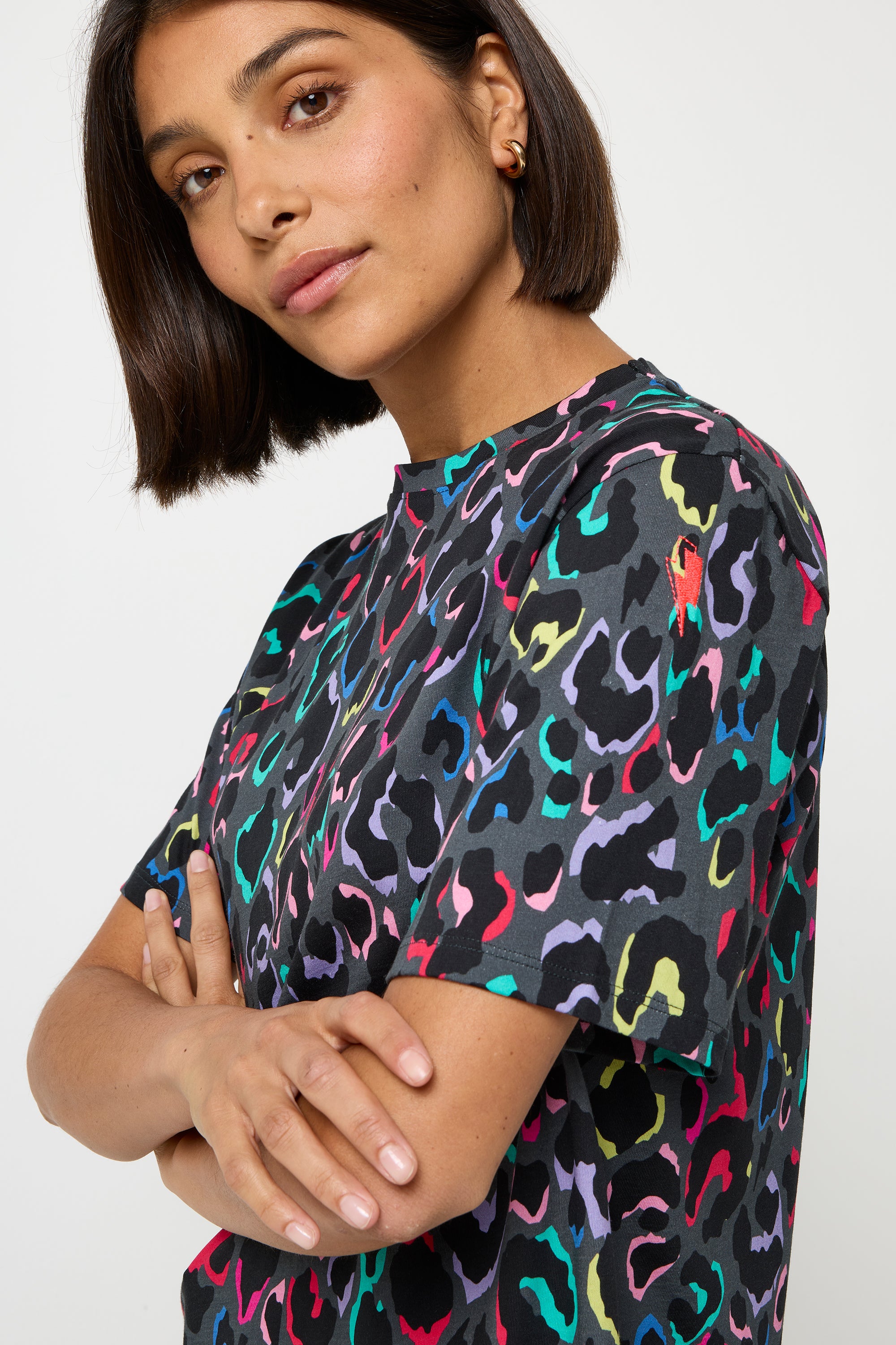 Our grey T-shirt with rainbow shadow leopard and lightning bolt print will become your off-duty staple. It's stylish, comfy and filled with superpowers. Complete the look with a pair of flattering Scamp & Dude jeans.