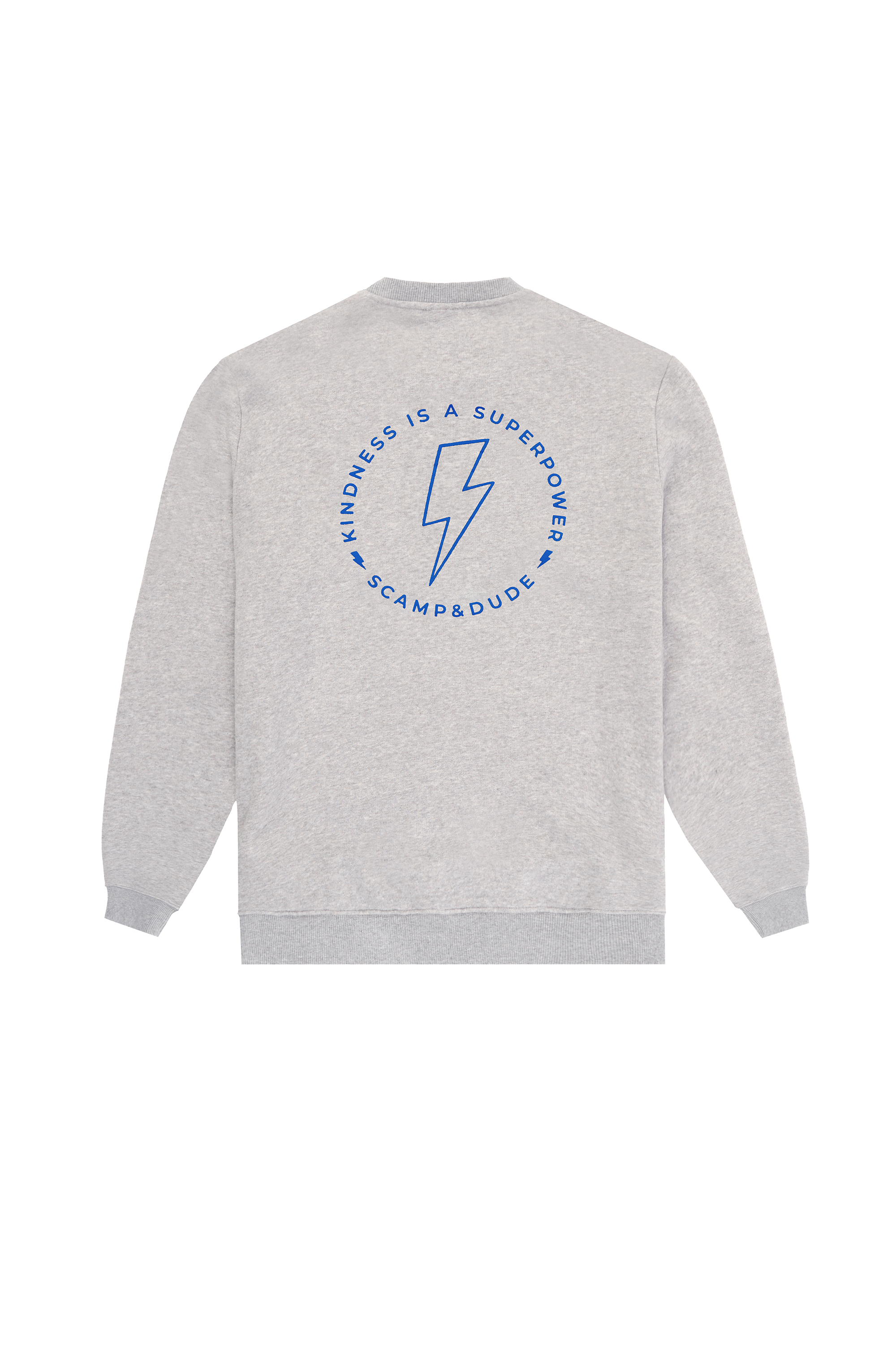 Our new men's grey marl graphic bolt placement sweatshirt is comfortable and versatile. We love a good 100% organic cotton sweatshirt, chuck it on whenever and with whatever you want, you can't go wrong.