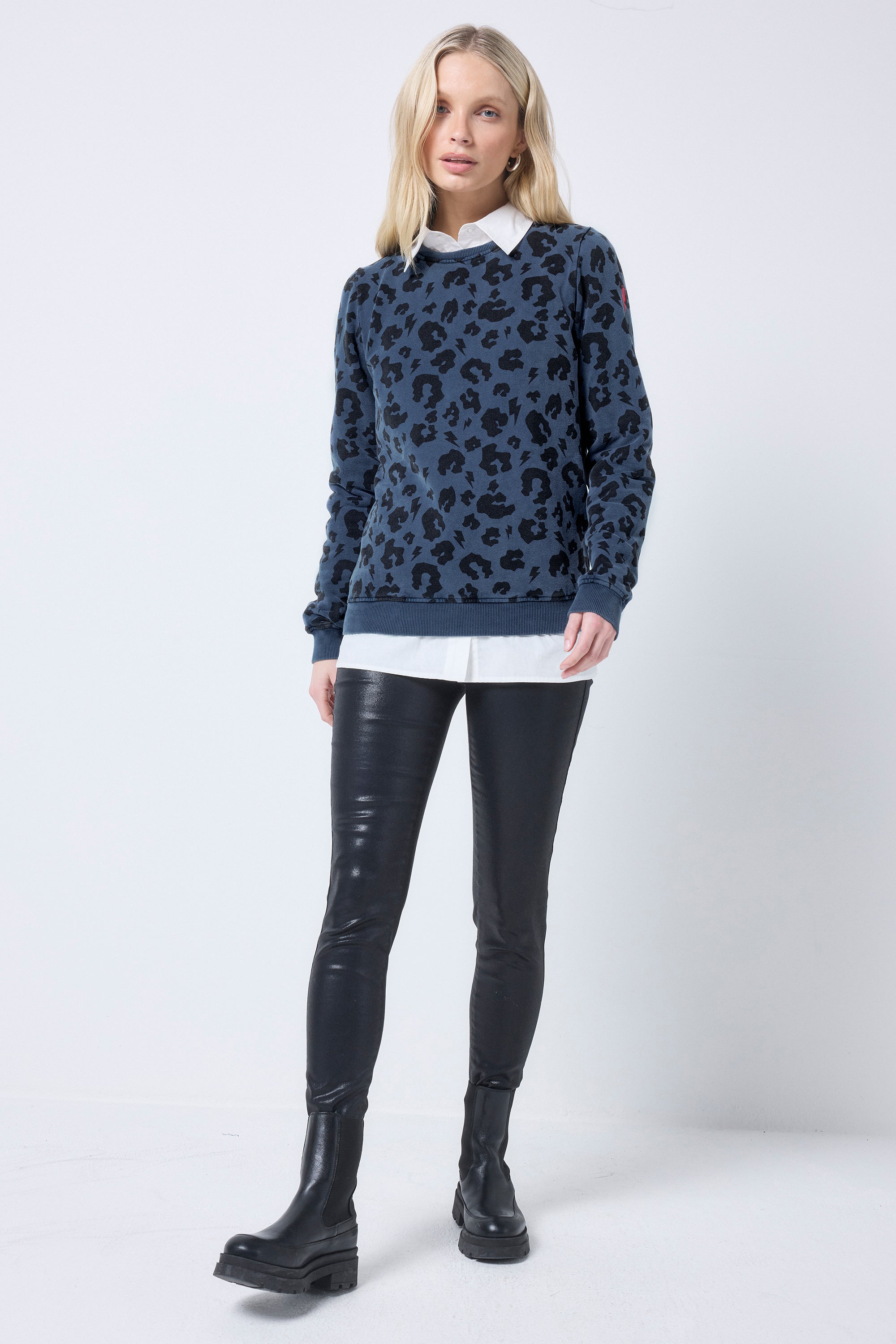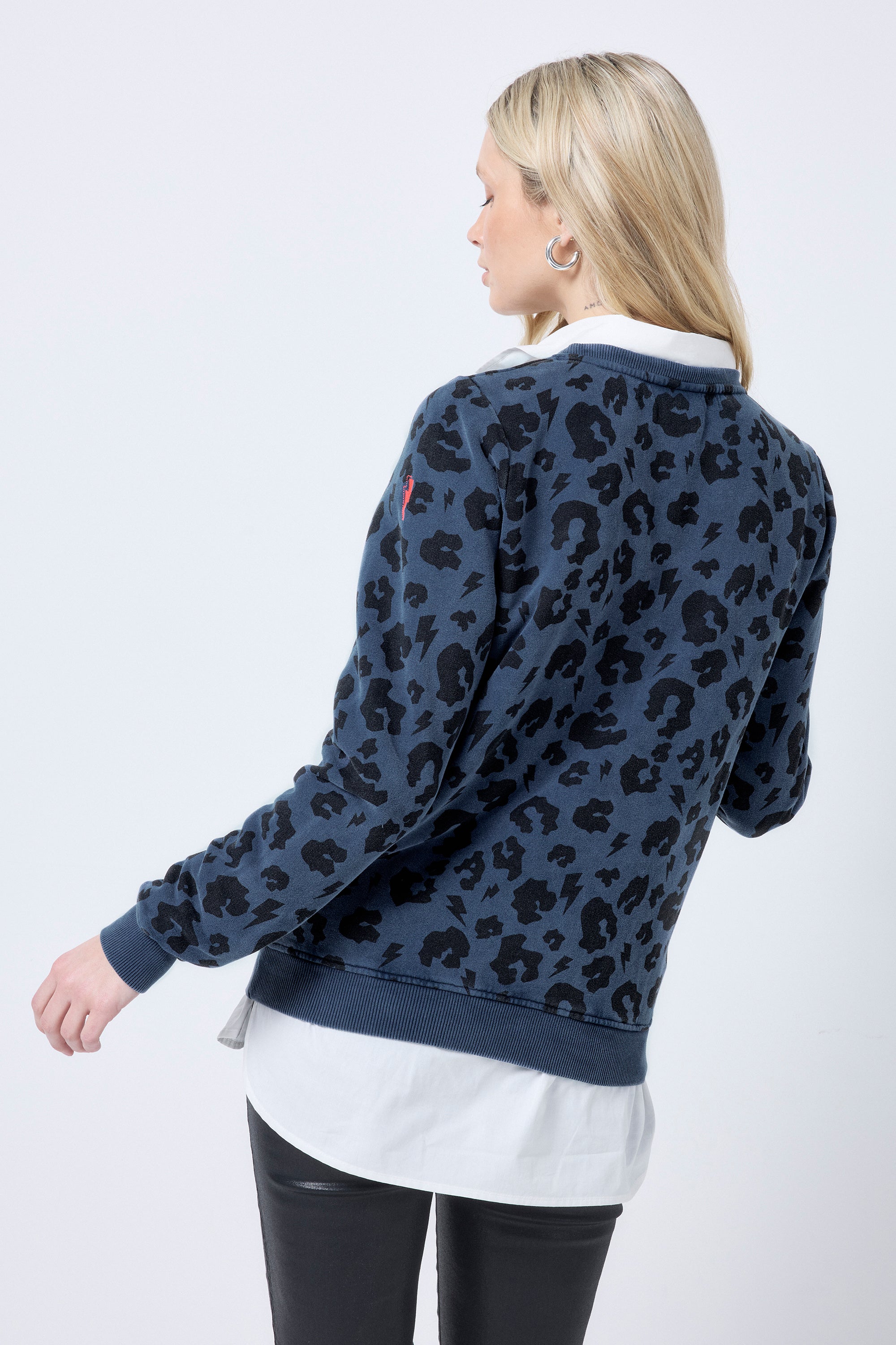 Amp up your casual collection with this navy leopard and lightning bolt print classic sweatshirt. The eye-catching design is bound to draw attention wherever you go.