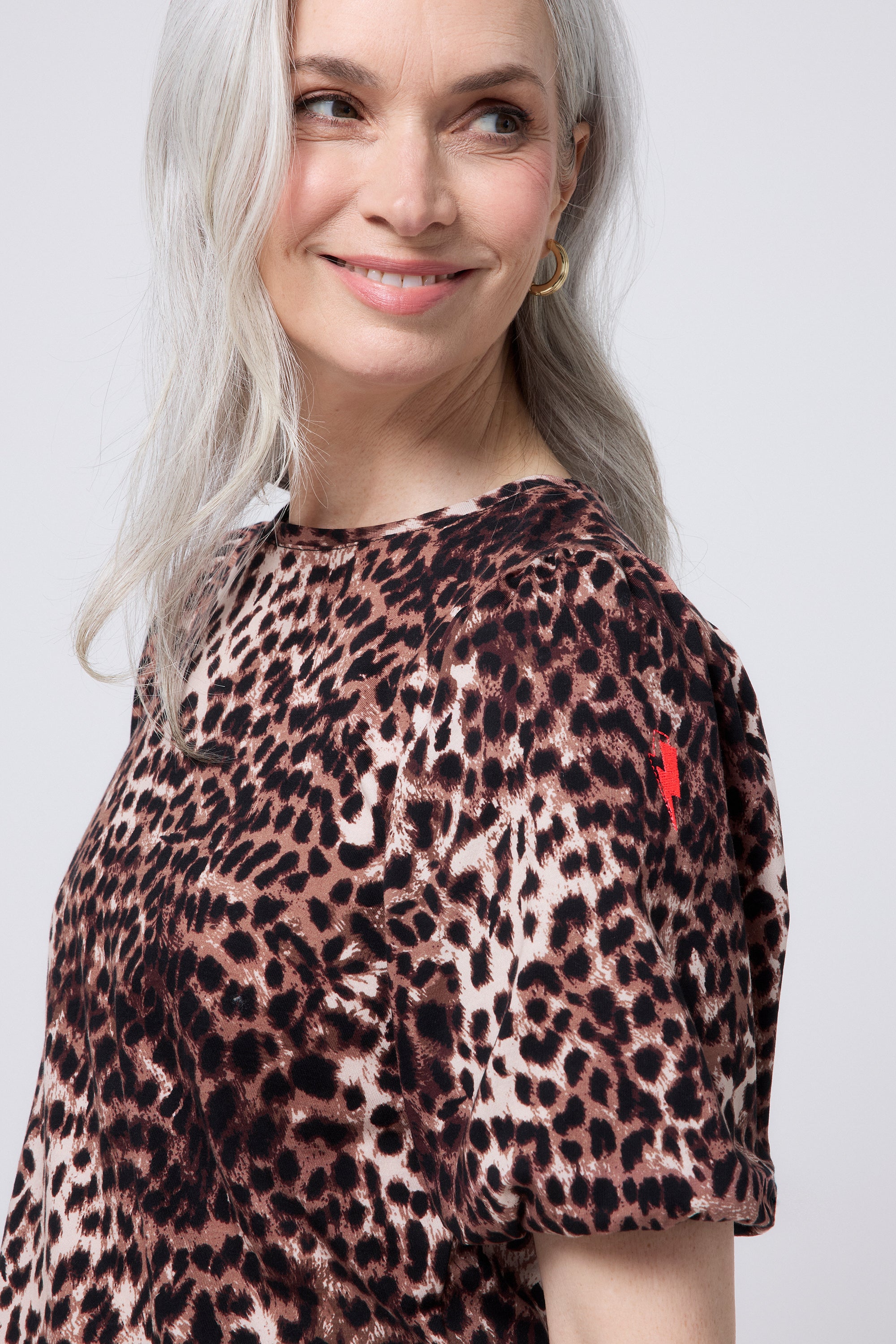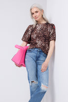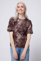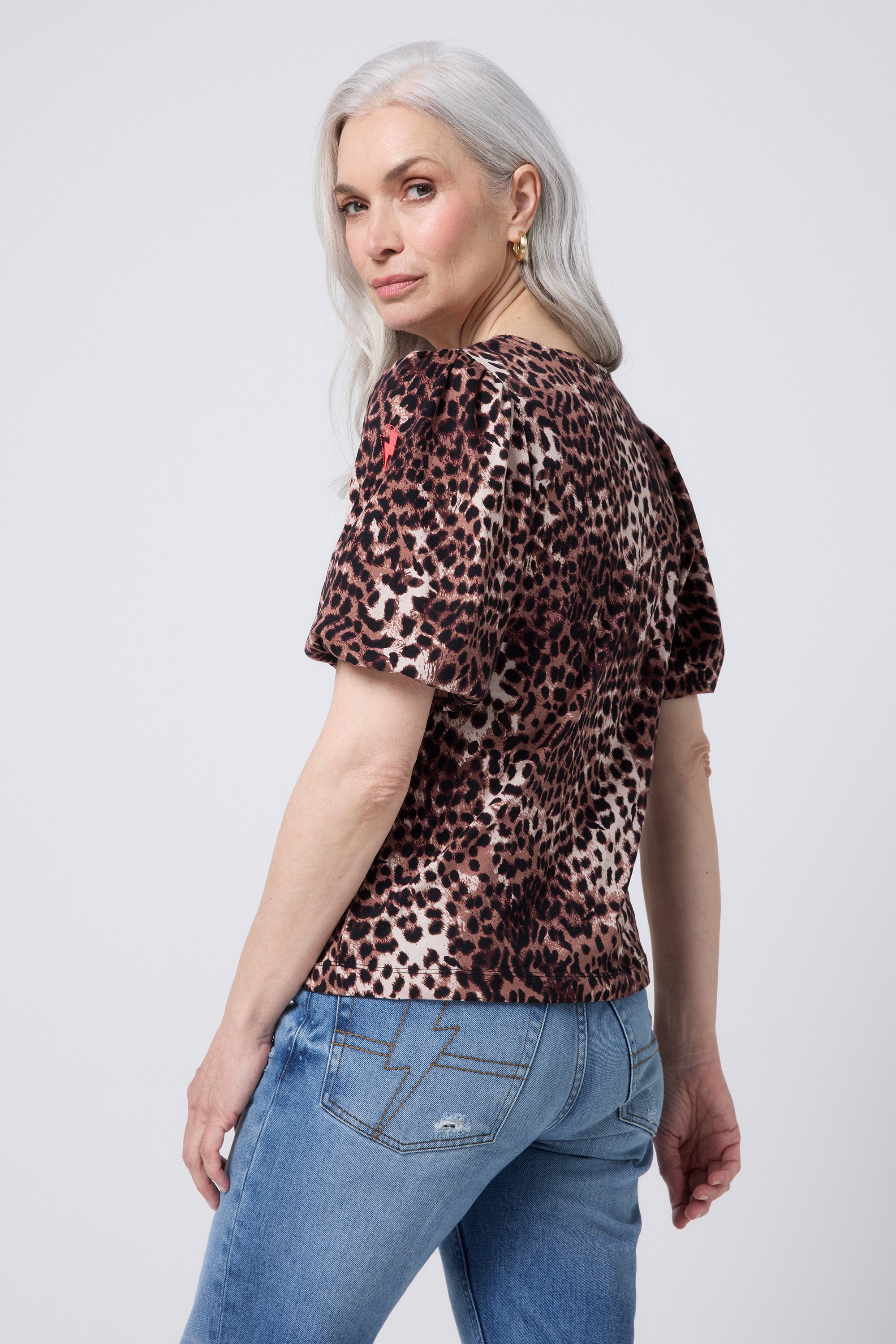 Neutral with Black Cheetah Puff Sleeve T-Shirt