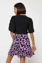 Pink with Blue and Black Shadow Leopard Skater Skirt