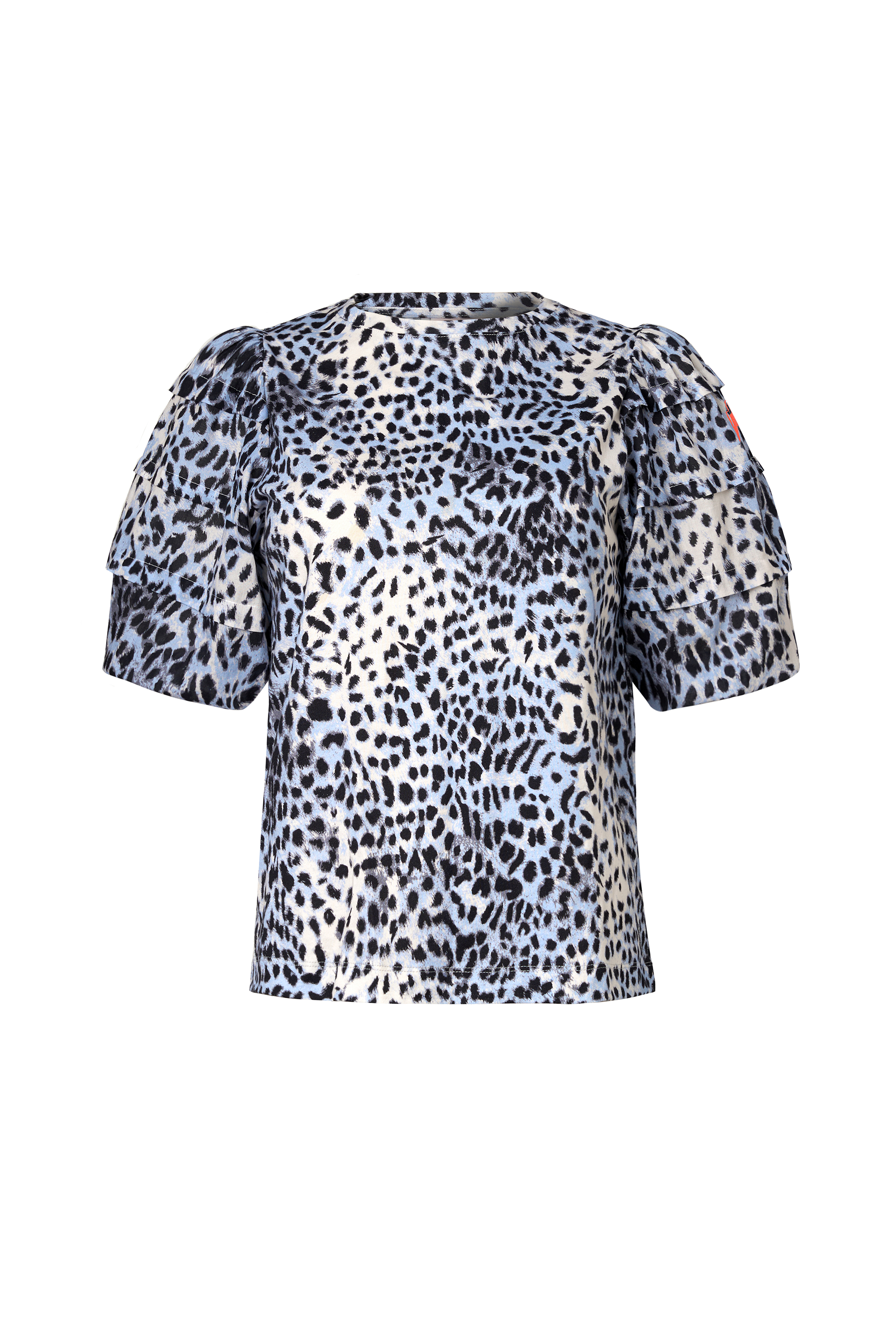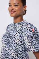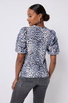 White with Blue and Grey Cheetah Pintuck Sleeve T-Shirt