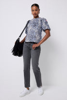 With its pretty pintuck sleeves, this white with blue and grey T-shirt proves that basics don't have to be boring. Pair with our denim and get ready for the compliments to roll in.