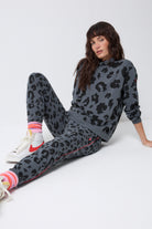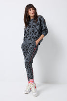 Our grey with black leopard super soft cosy joggers deliver a perfect blend of comfort and style. Team them with the matching hoodie and a pair of trainers to run errands on the weekend.