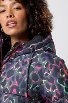 Cosy up in our rainbow leopard print puffer coat, your AW25 wardrobe staple. Designed with a shorter length, throw this on over anything from loungewear to jumpers and jeans or dresses.