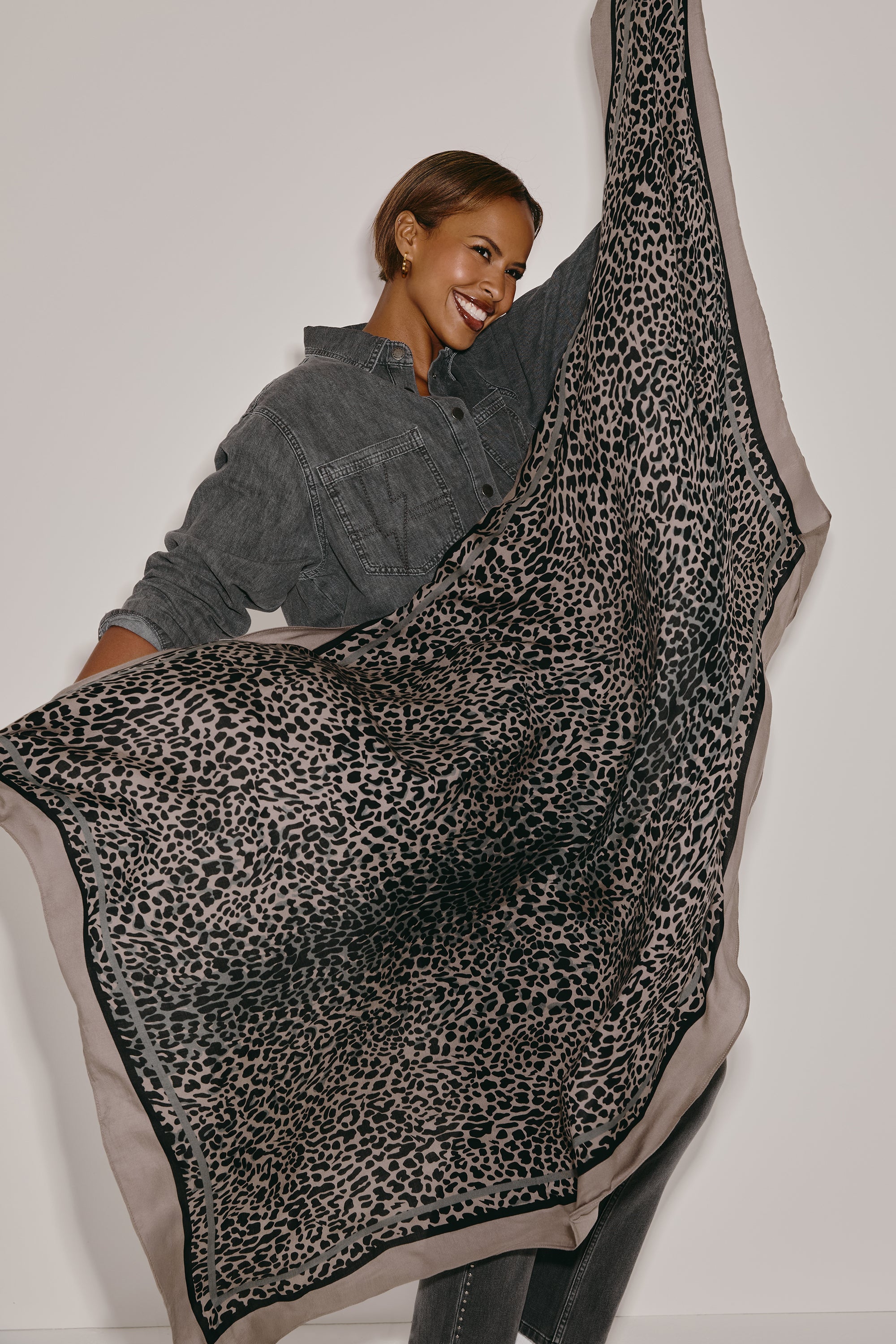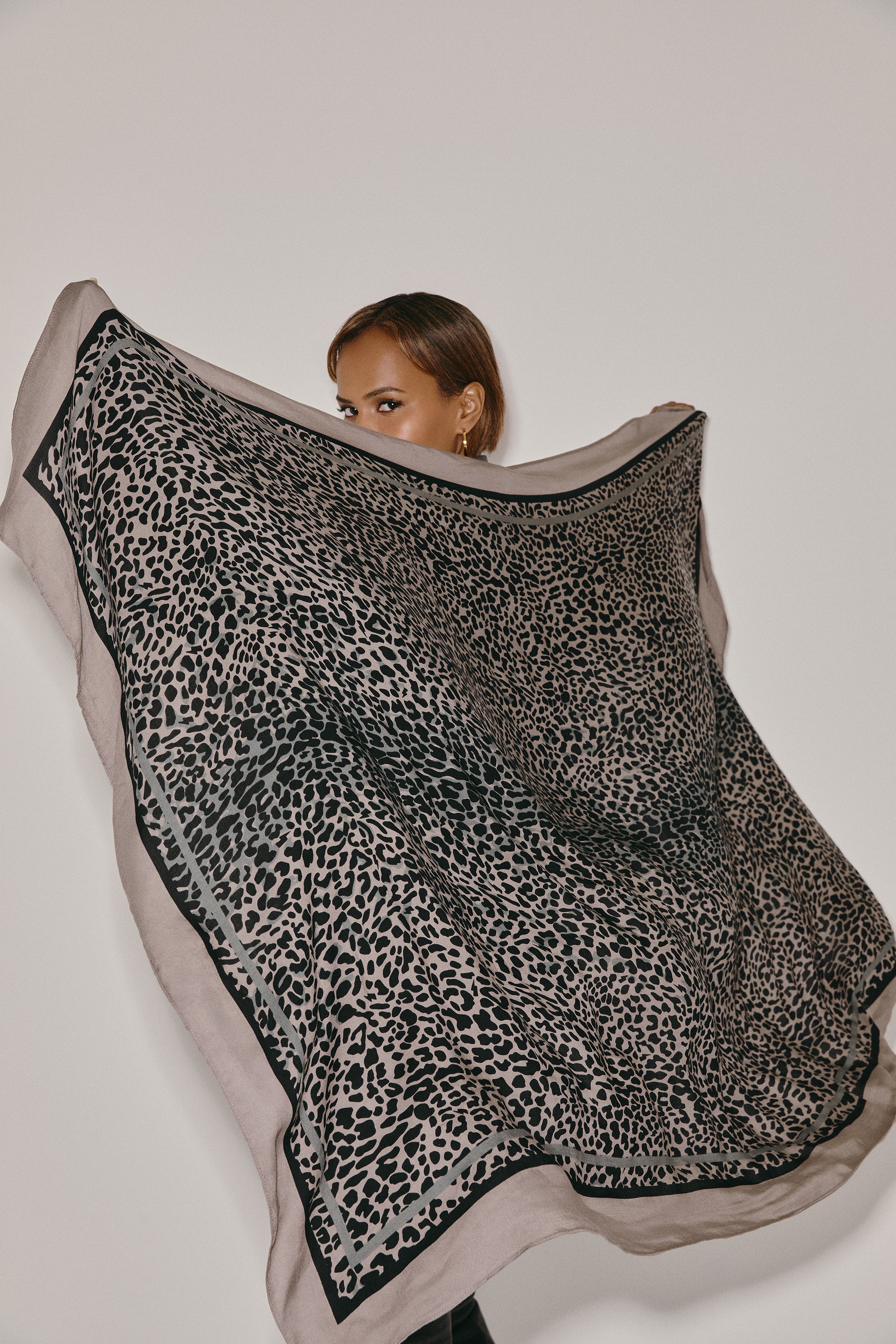 Scamp & Dude x Sabrina Elba Taupe with Grey and Black Wild Leopard Charity Super Scarf