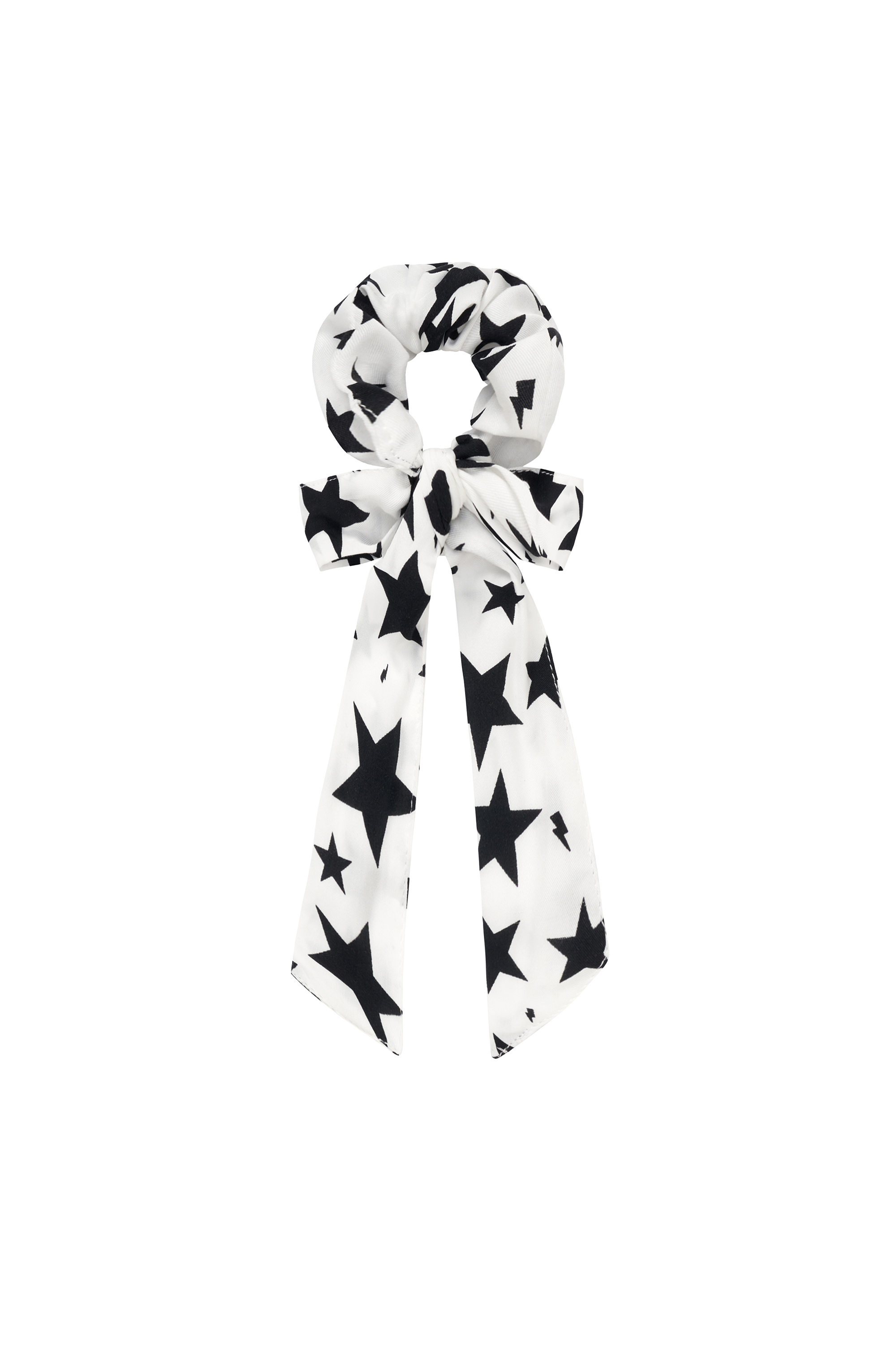 - Ivory bow scrunchie in our black star and lightning bolt print