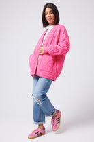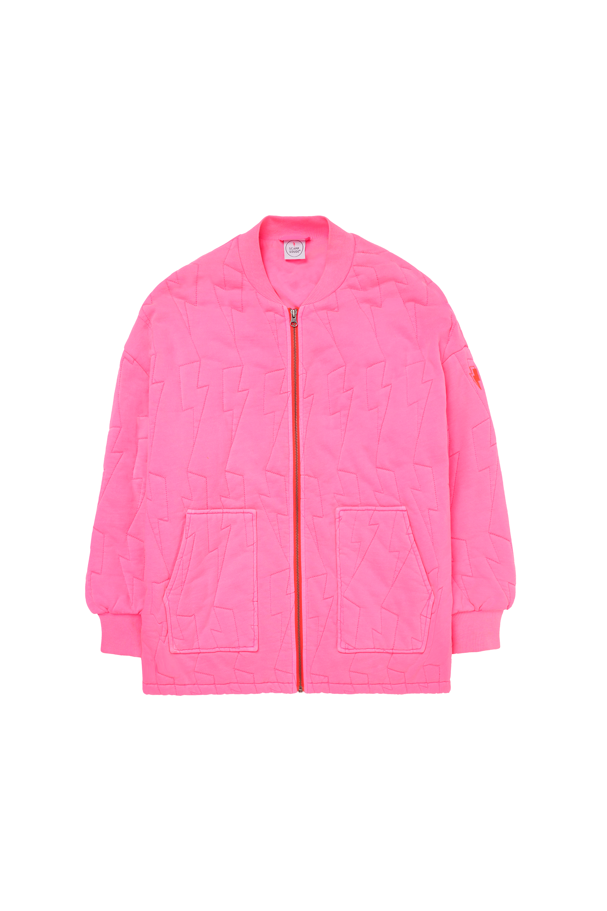 Neon Pink Lightning Bolt Oversized Quilted Bomber Jacket