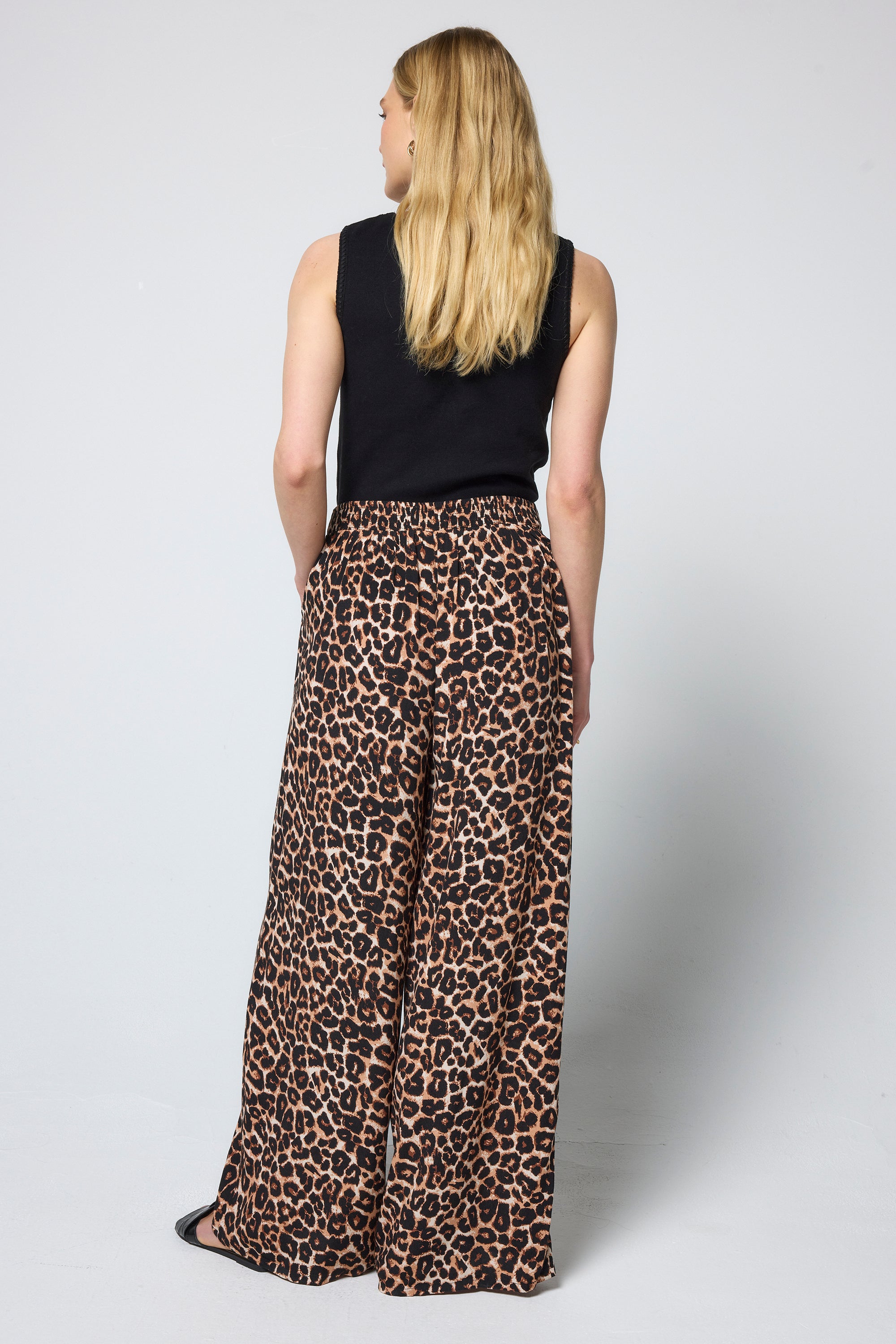 Our jaguar print wide leg trousers introduce a fresh, flattering silhouette to the collection. Available in a regular and long length, they fall into an effortless wide leg shape for all-day comfort and style.