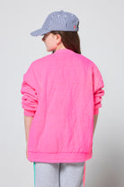 Kids Neon Pink Lightning Bolt Quilted Bomber Jacket