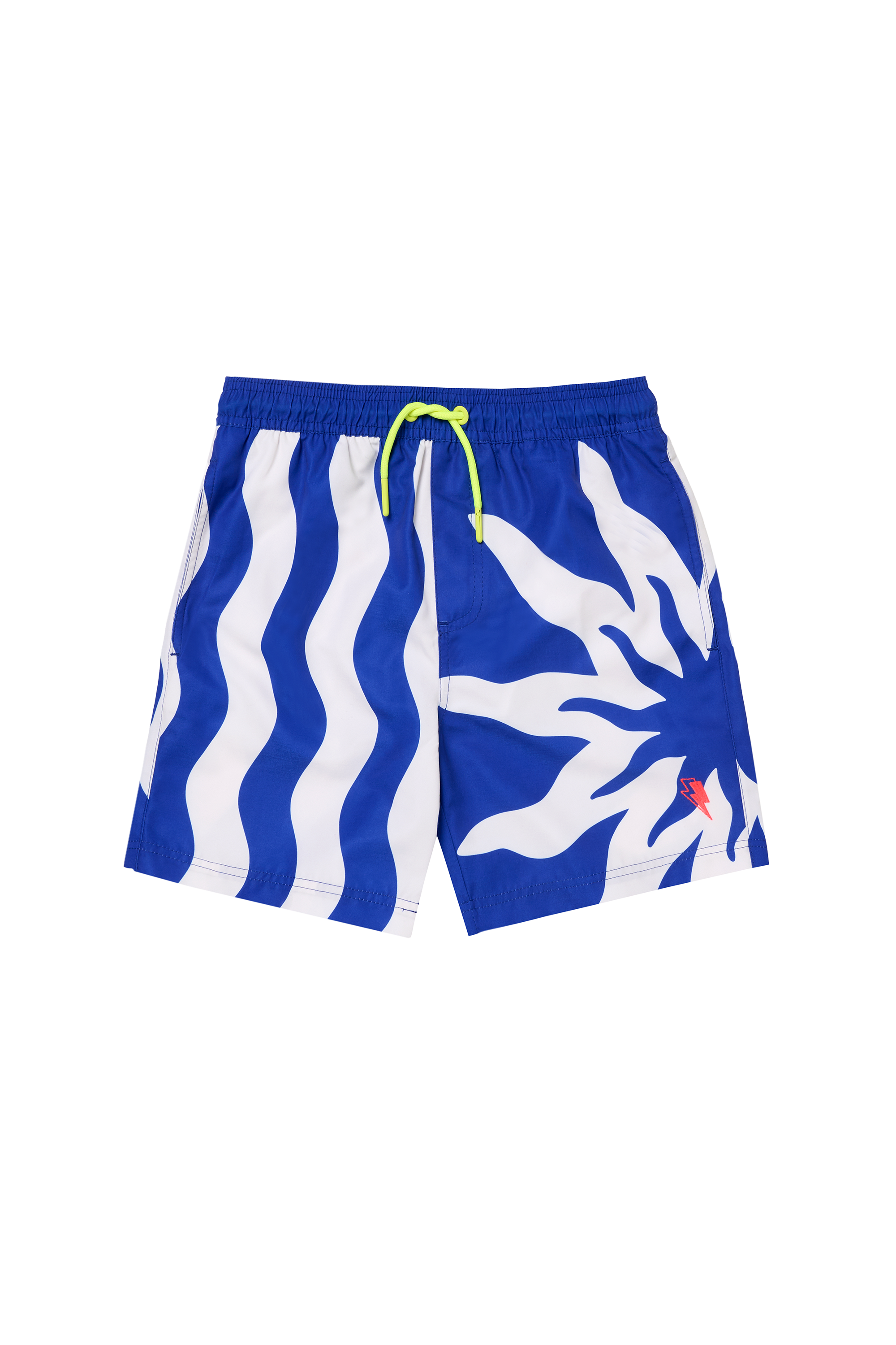 Our new blue sunstar and stripe print swim shorts are a sun-safe option to protect delicate skin. They are perfect for super-splashers and wave jumpers to hit the water.