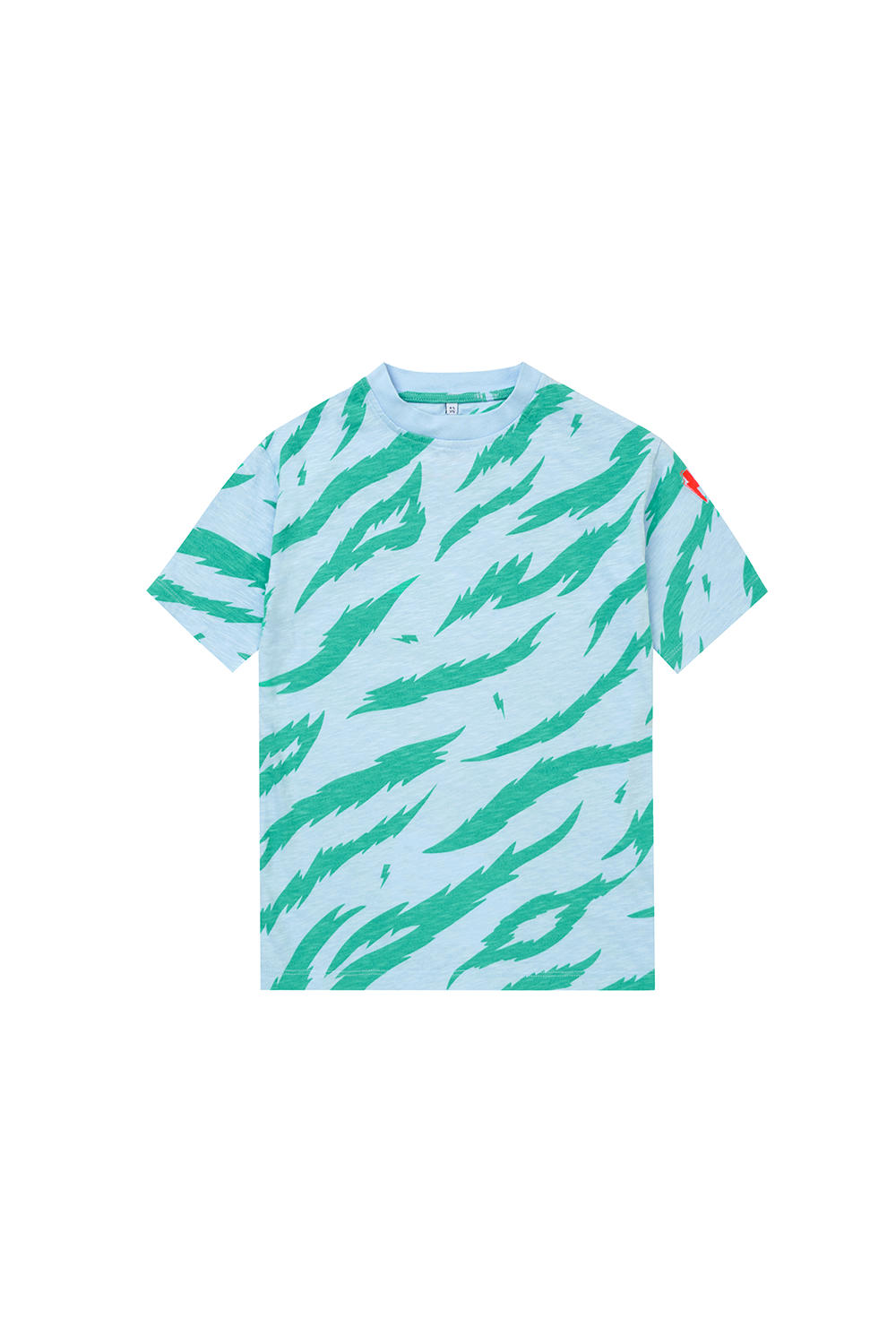 Chilled days call for this stylish light blue with green graphic tiger print T-shirt. Made from super soft, organic cotton to keep them cool, while the comfortable loose fit lets them move around freely.