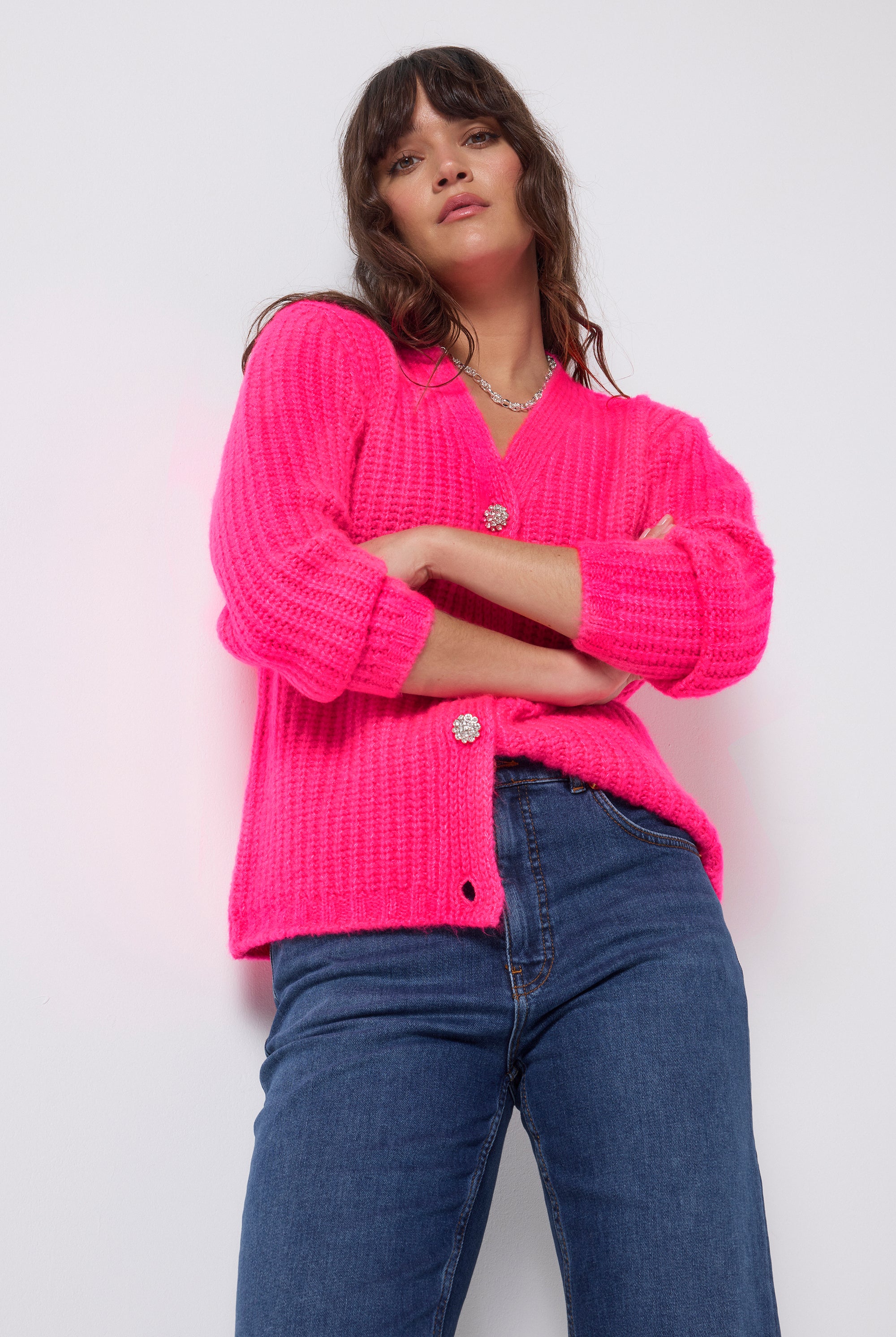 Our collection includes bright colourful knitwear with our neon pink embroidered lightning bolt on the arm. In striking vibrant designs, we offer leopard print jumpers, colourful jumpers, lightning bolt knitted jumpers and colourful cardigans that will suit any occasion. Our animal print cardigans are perfect for layering over our maxi dresses.
