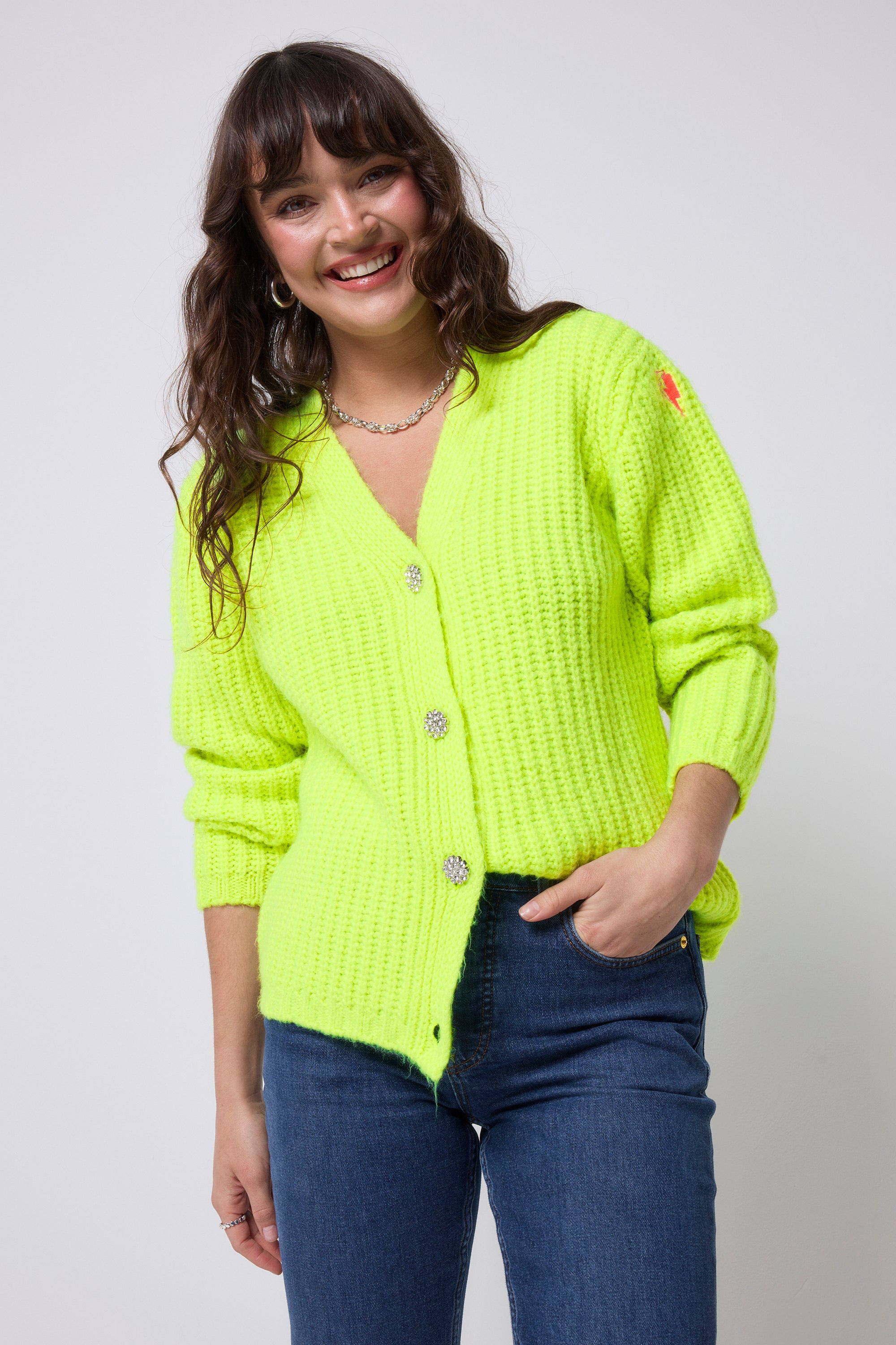 Neon Yellow Button Through Cardigan