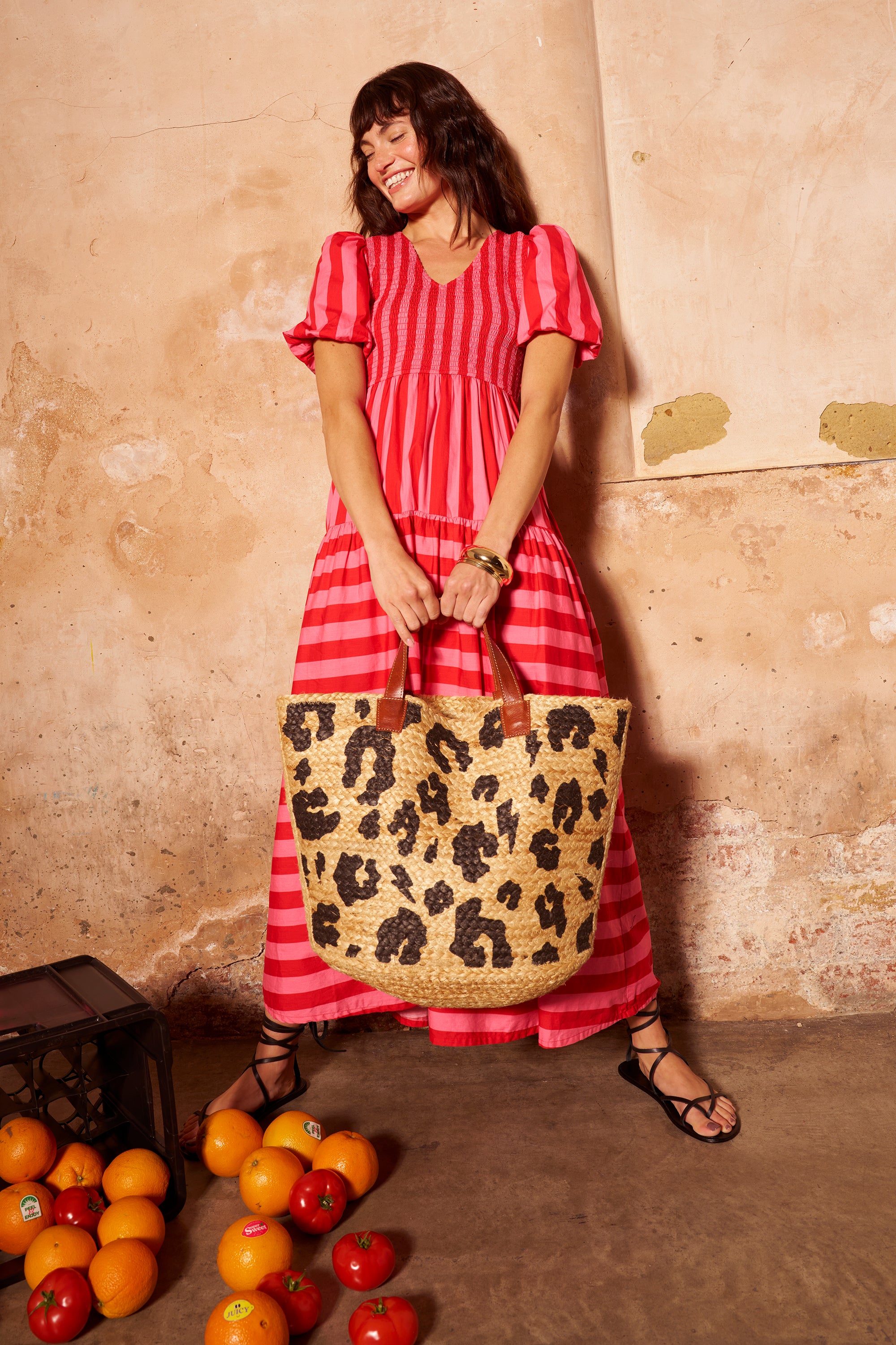 Get a handle on our striped straw bag. Perfect for brunch dates or beach days, the roomy interior is ready to hold everything from sunscreen to snacks.
