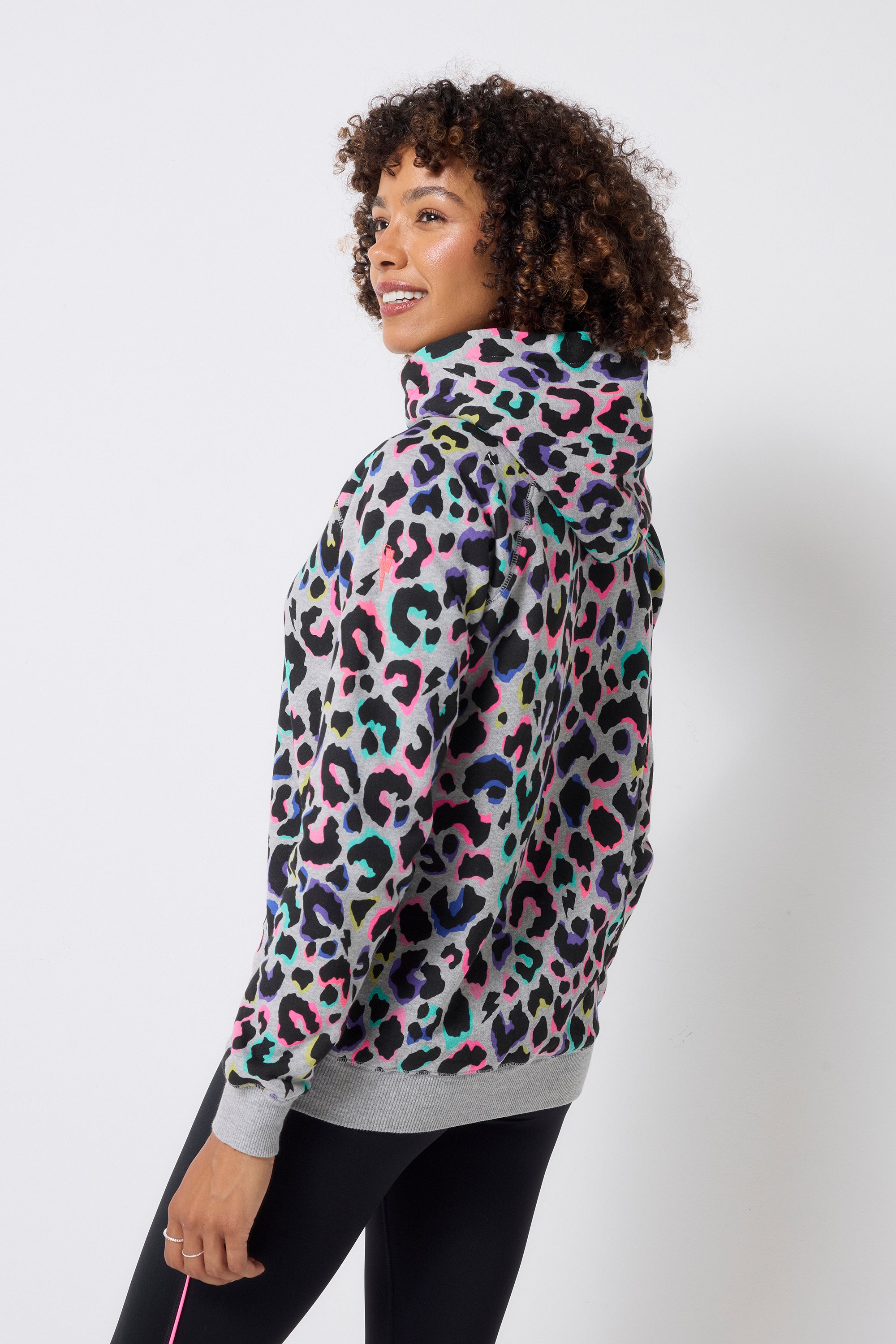 Our light grey with rainbow shadow leopard hoodie is the ultimate in stylish loungewear. The super soft, organic cotton hoodie will be one of the cosiest items in your wardrobe.