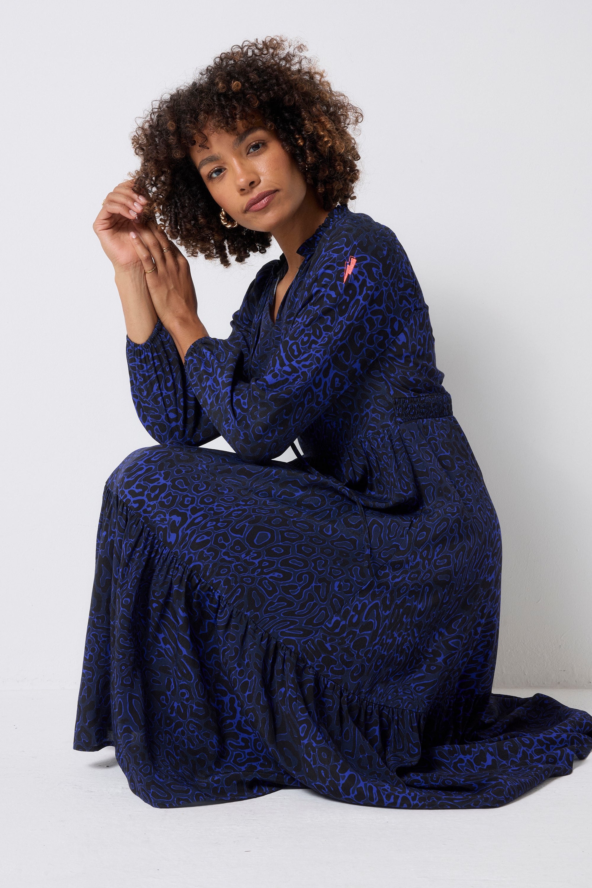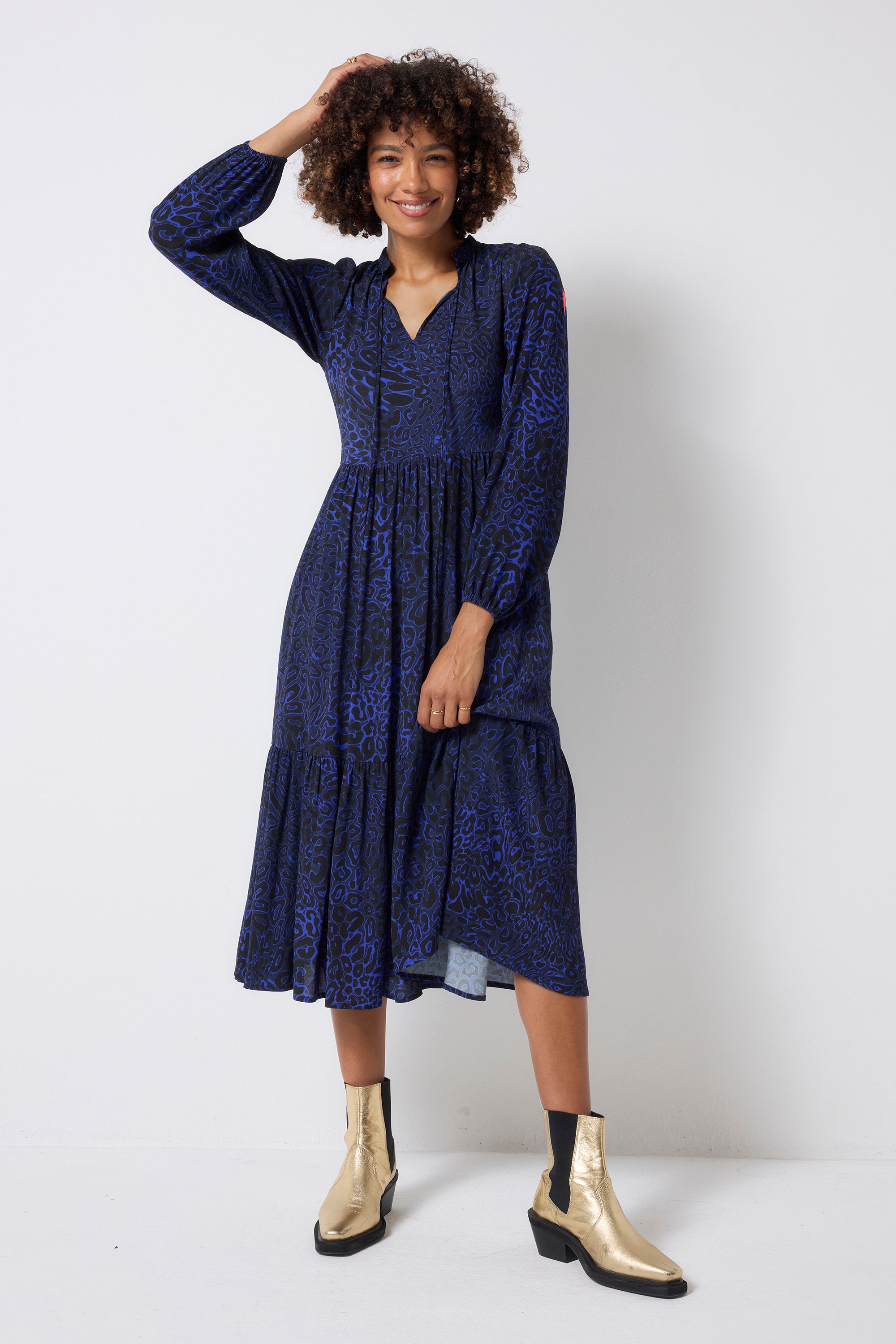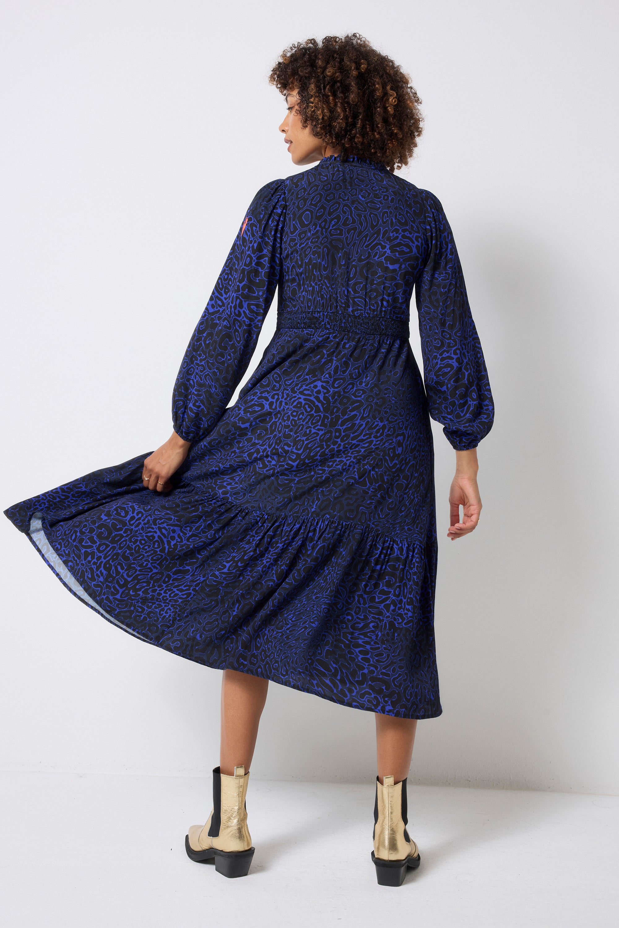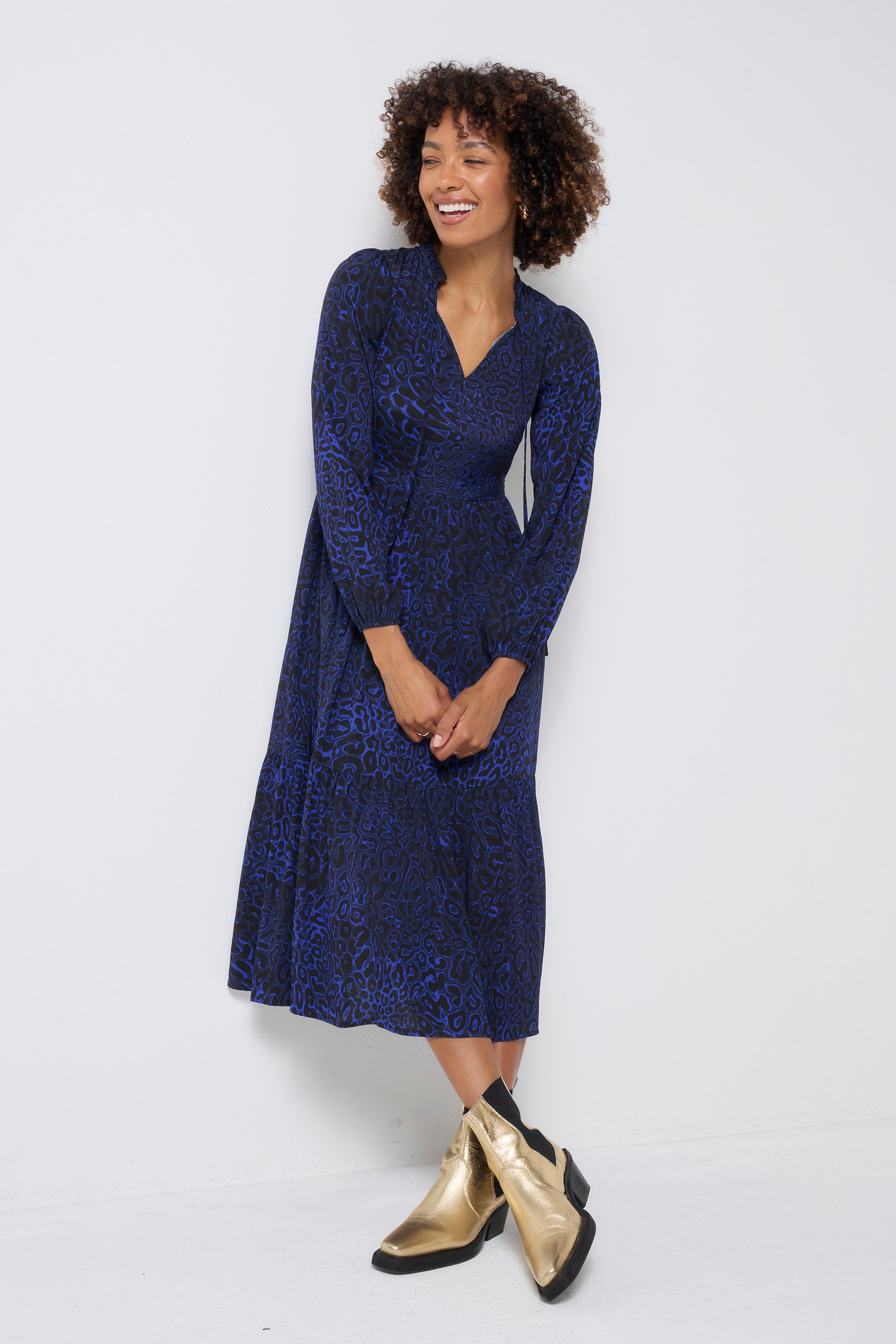 Your new favourite throw-on-and-go dress is here. Made to go from work to weekend without a fuss, thanks to the classic midi length, relaxed silhouette and rich navy hue with our leopard stingray-inspired print.