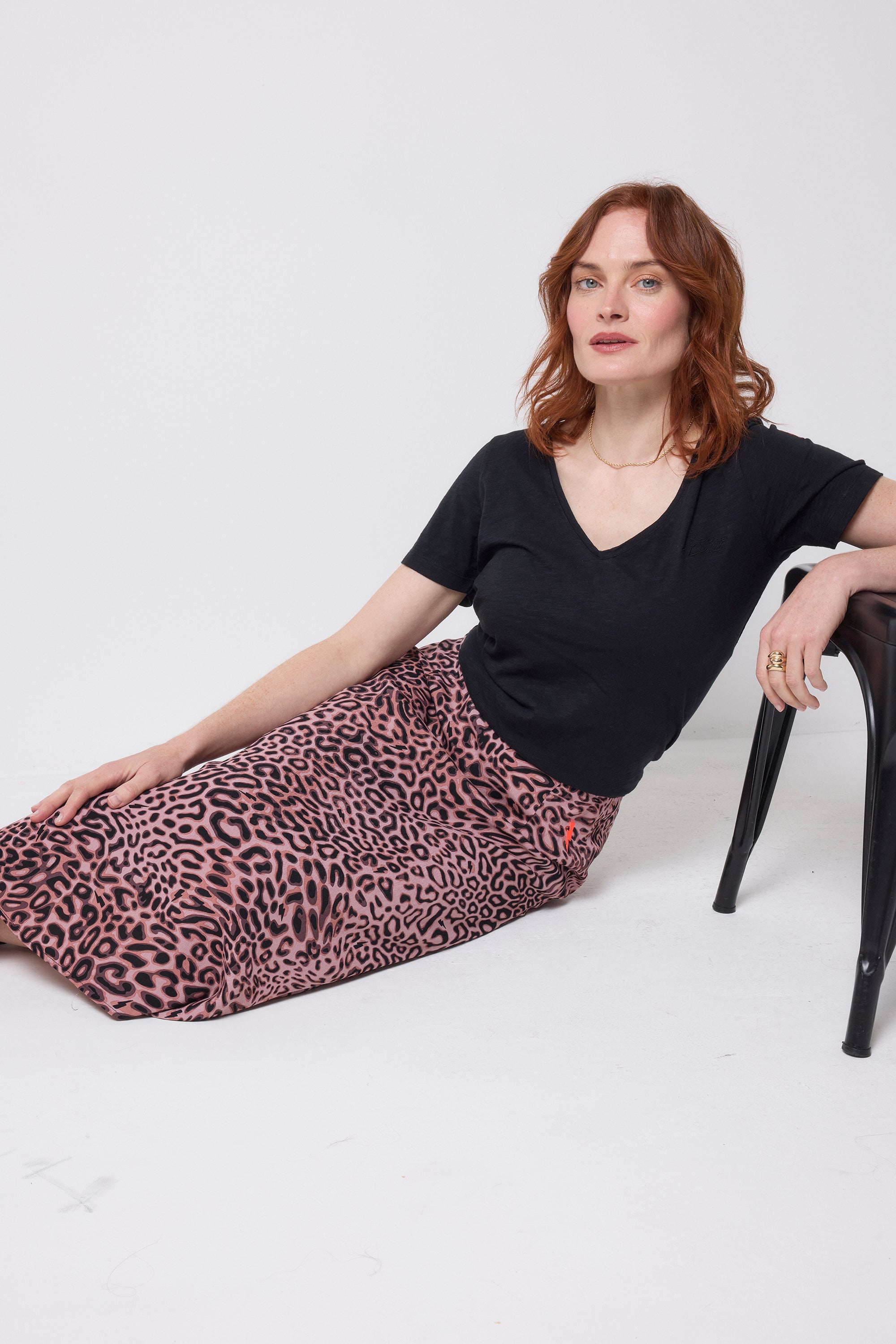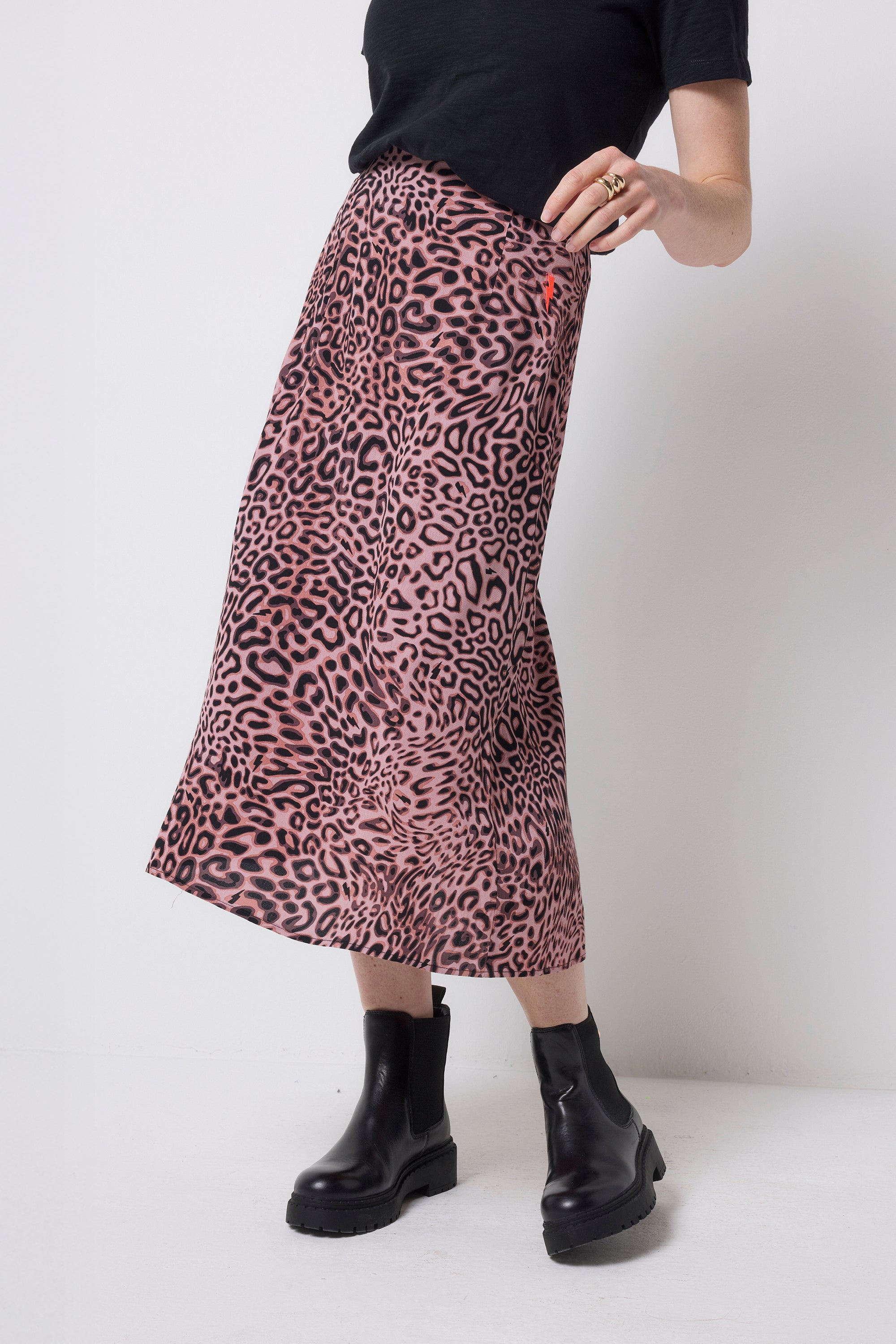 Spruce up your skirts collection with this neutral leopard ray and lightning bolt print midi slip skirt. This statement making piece can be amped up for special occasions or dressed down easily.