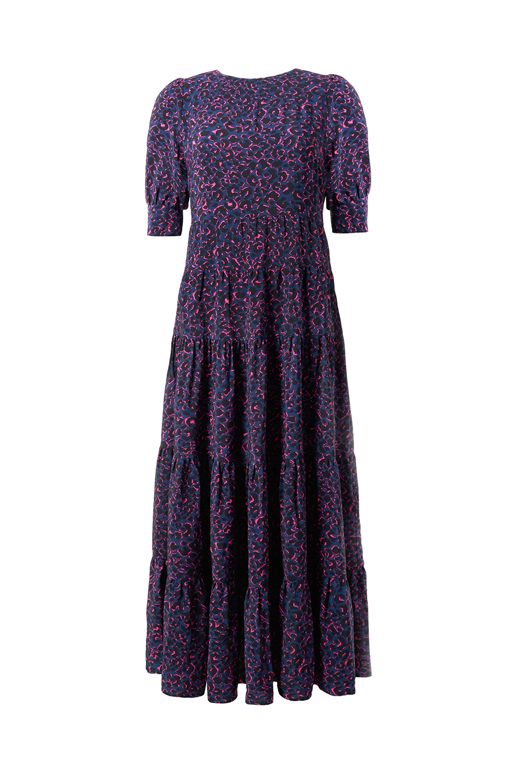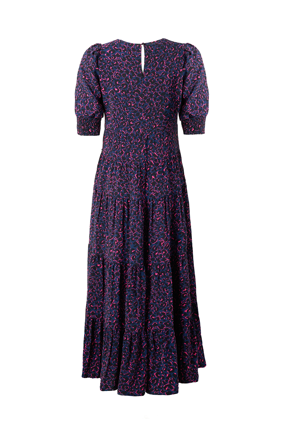Navy with Black and Pink Small Shadow Leopard Maxi Dress