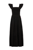 Print: Black with Gold and Silver Lurex Spot Maxi Sundress