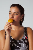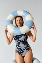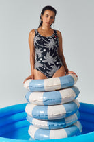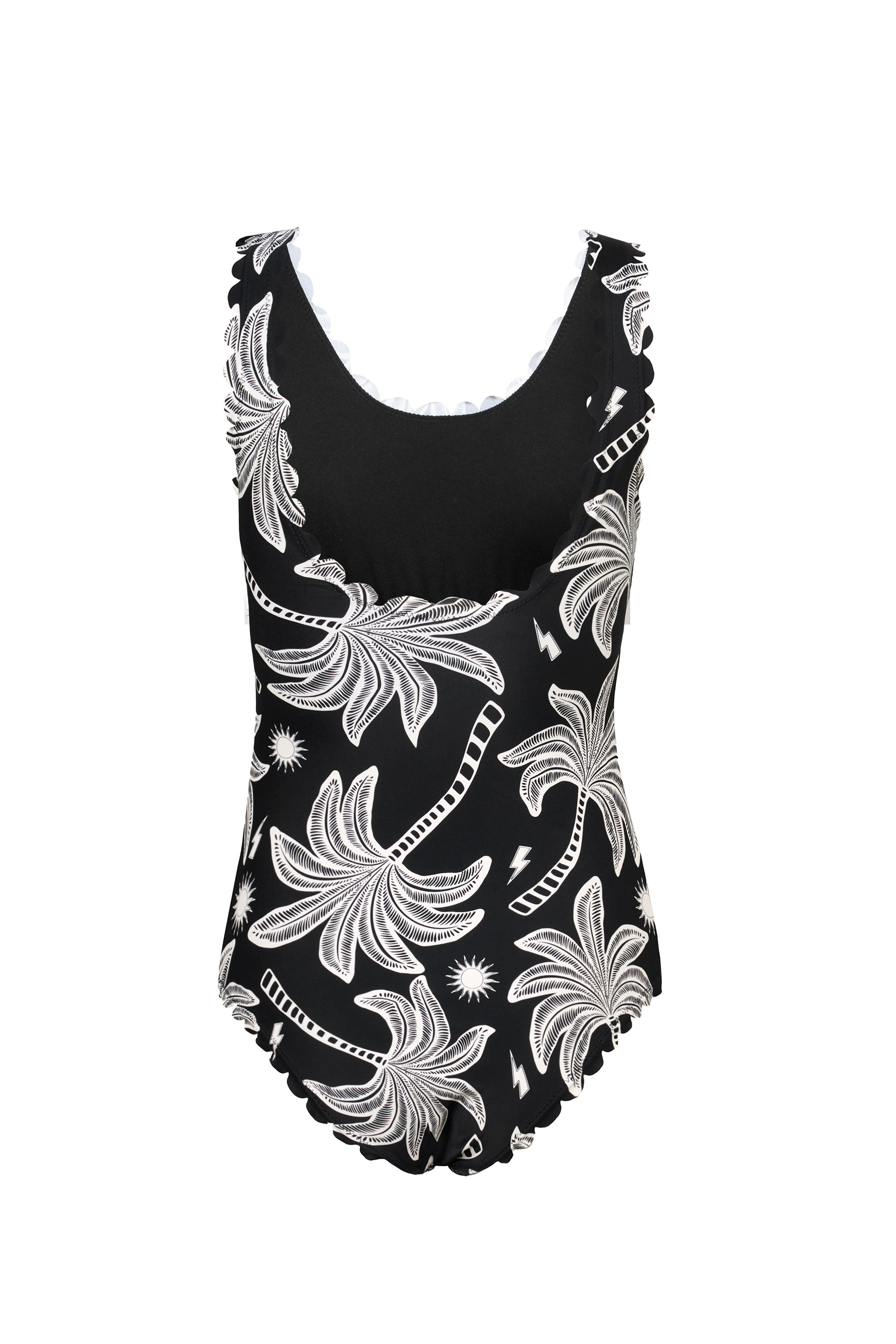 Black with Off White Palm Spring Scallop Edge Swimsuit