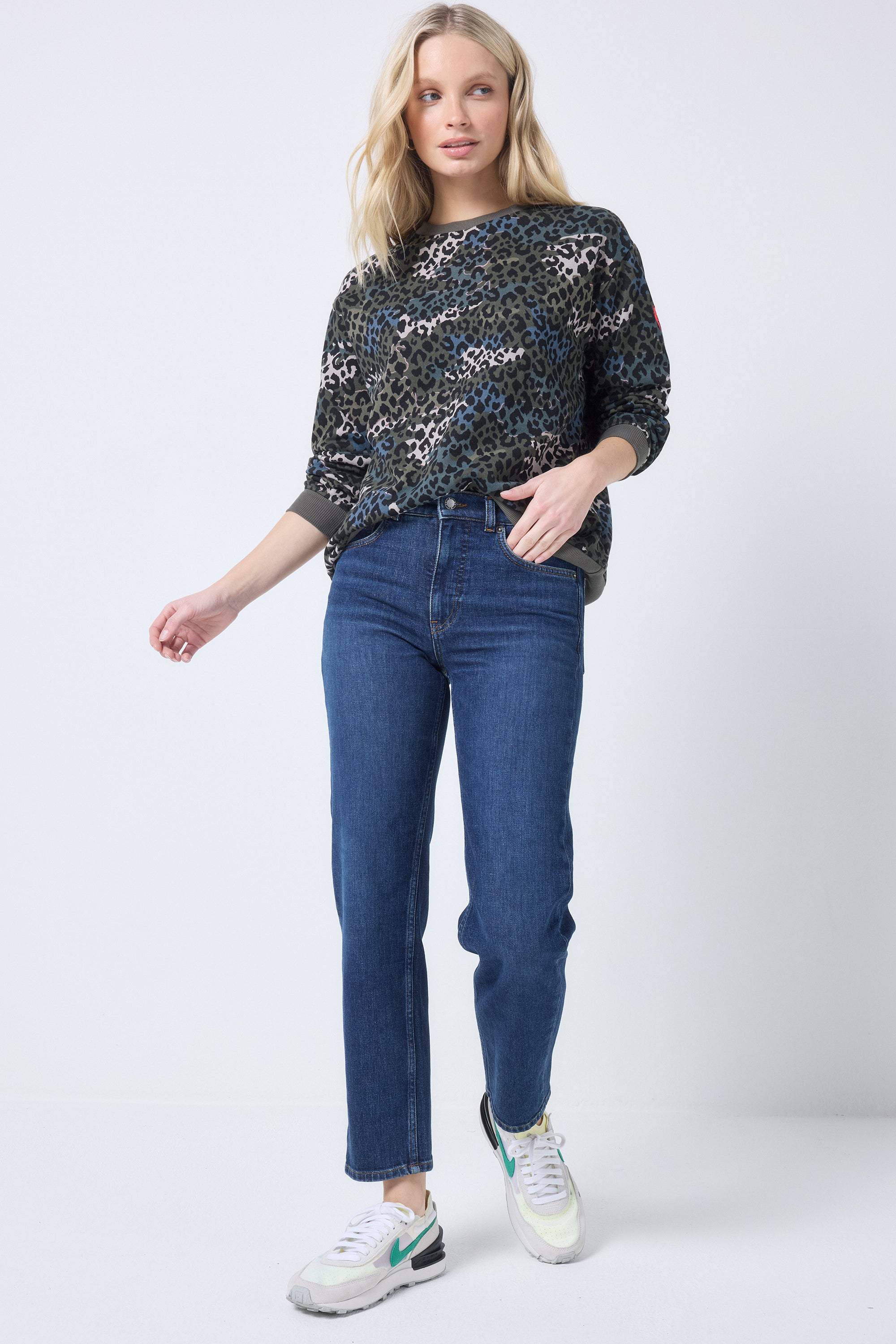 Amp up your casual collection with this khaki with green wild camo leopard and lightning bolt print oversized sweatshirt. It's oversized fit makes it easy to layer, while dropped shoulder seams add to the relaxed feel. The eye-catching design is bound to draw attention wherever you go.