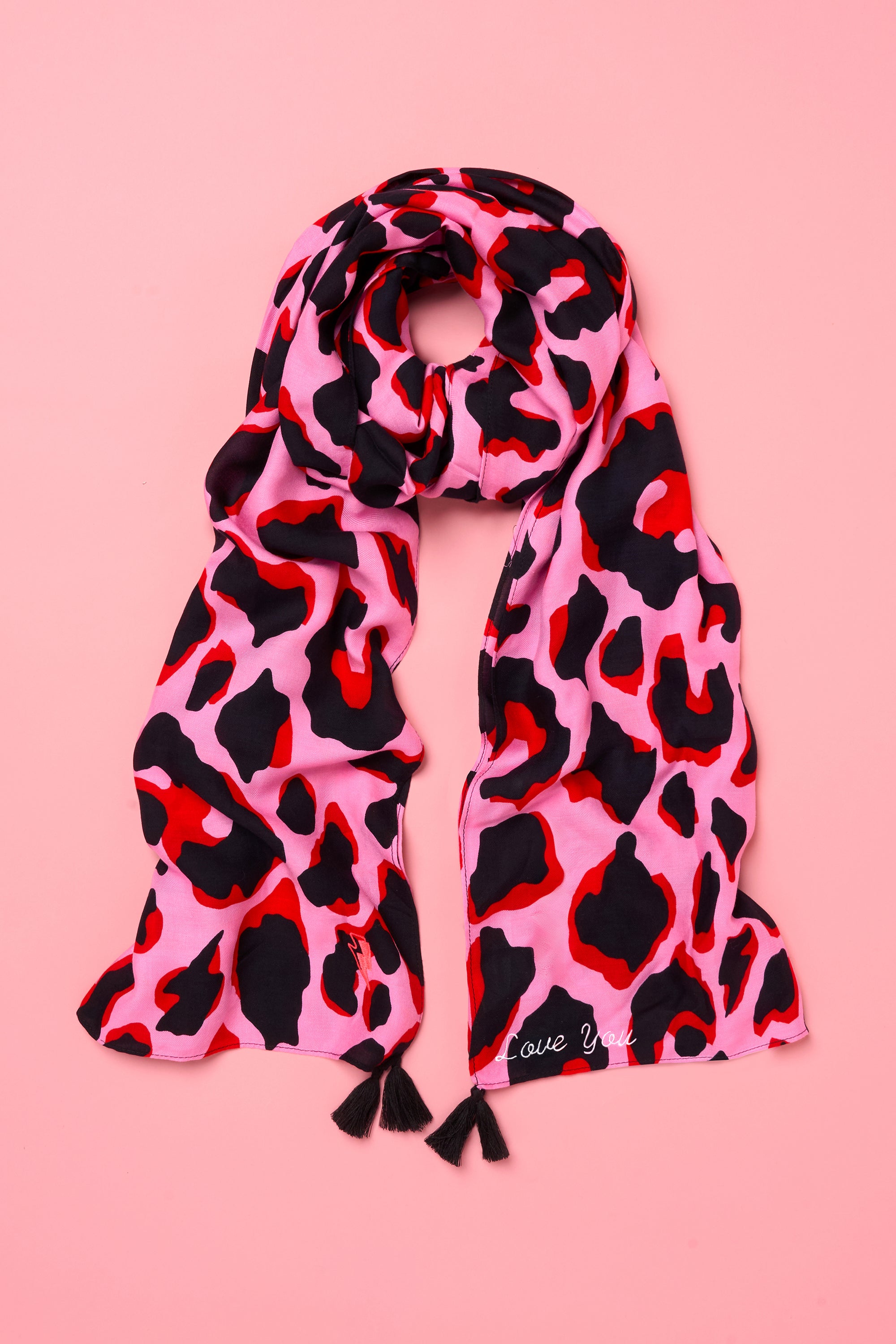 Scamp & Dude x Sophie McCartney Pink with Red and Black Mega Shadow Leopard Charity Super Scarf