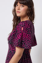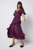 A timeless addition to your wardrobe, our grey with pink leopard ray print midi dress was designed to impress. With short angel sleeves, a tiered skirt and ruffle detailing, it's definitely a need - not a want.