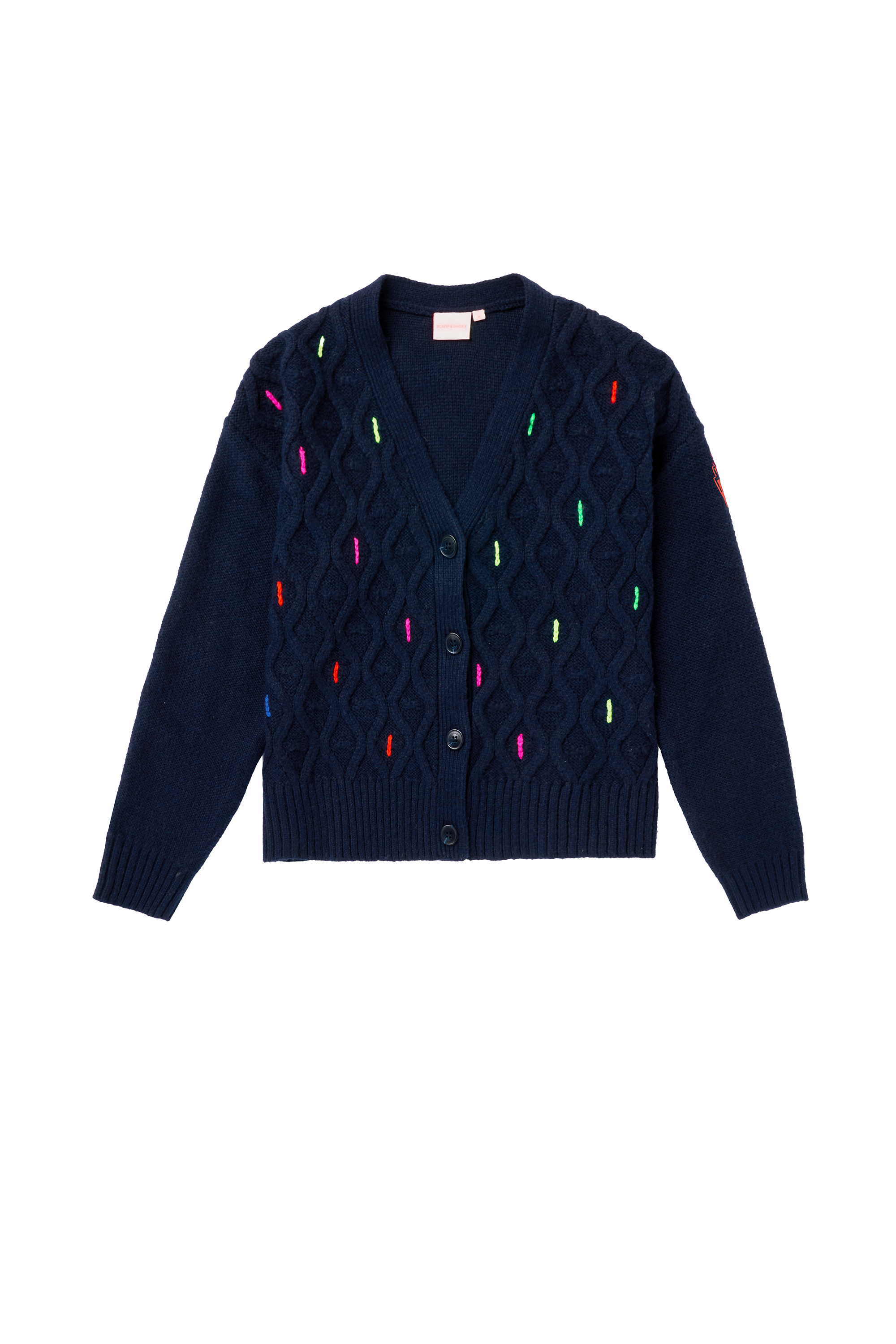 Print: Navy with Neon Rainbow Flecks Cable Knit Cardigan