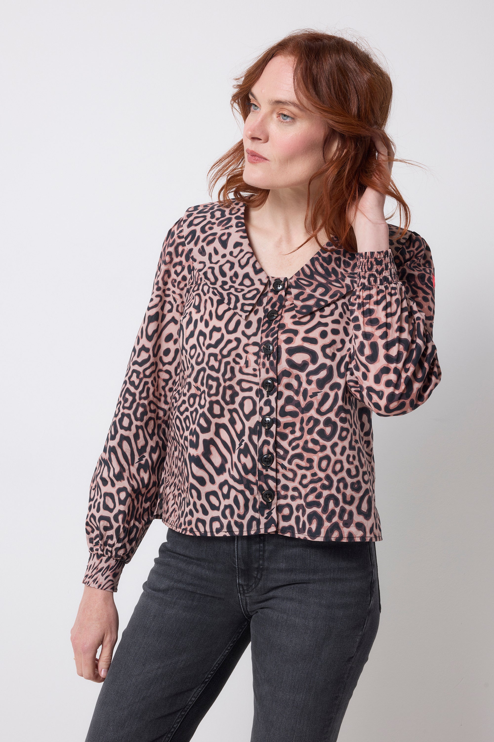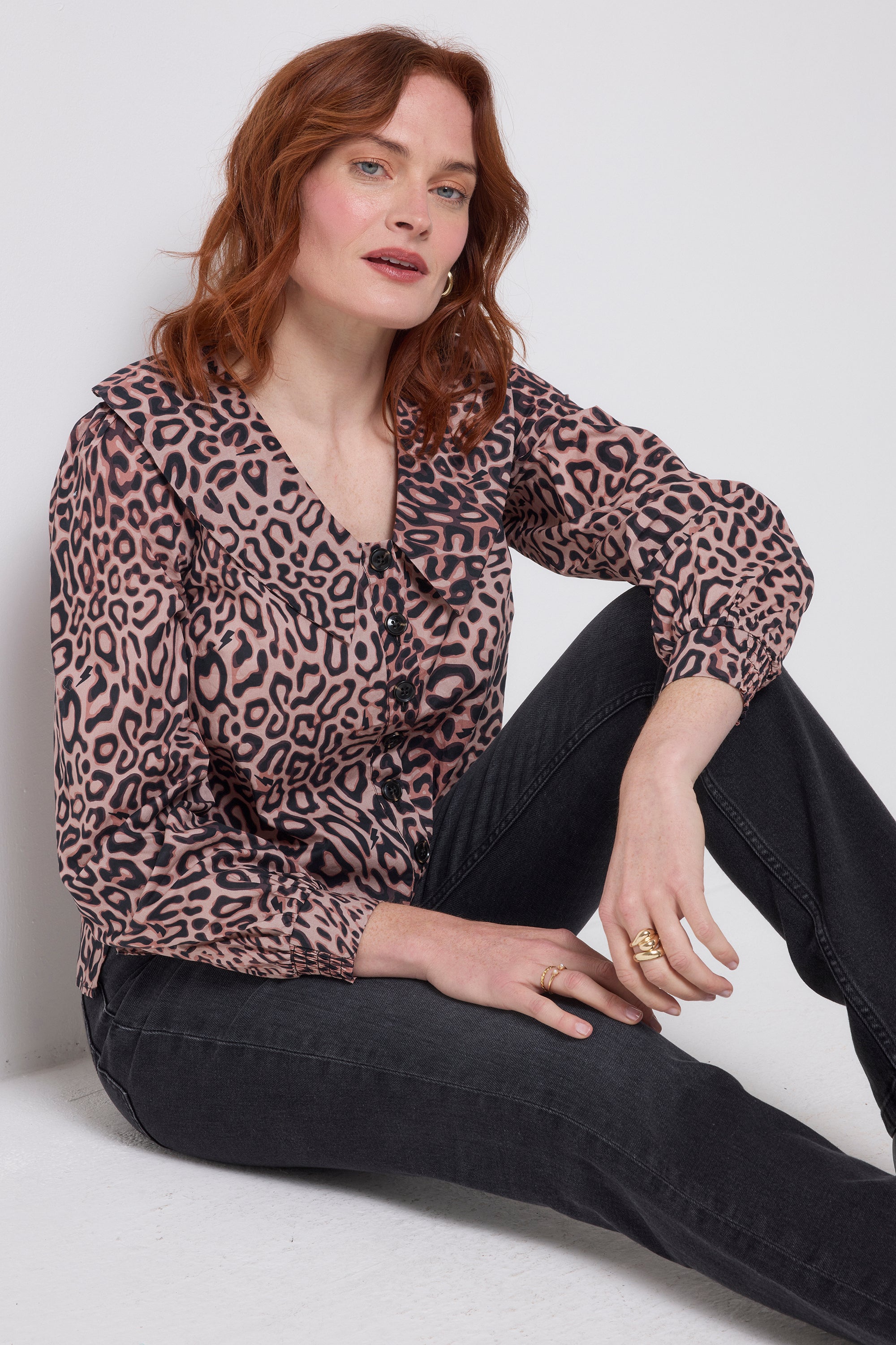 Our neutral blouse is made from super-soft cotton and has a peter pan collar. It's the ultimate in day to night versatility, wear it to easily nail the 'jeans and a nice top' look.