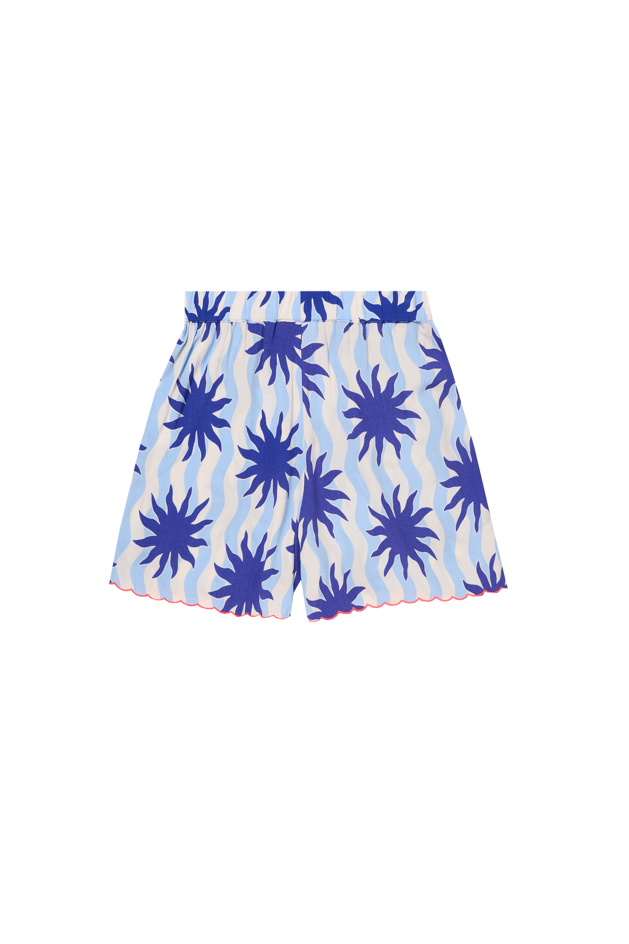 Create your favourite summer looks with our blue with cream wiggle sunstar scallop edge shorts, they make warm weather dressing a breeze. Designed to be extremely flattering.