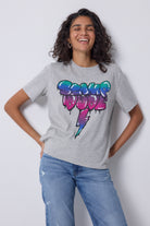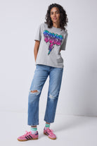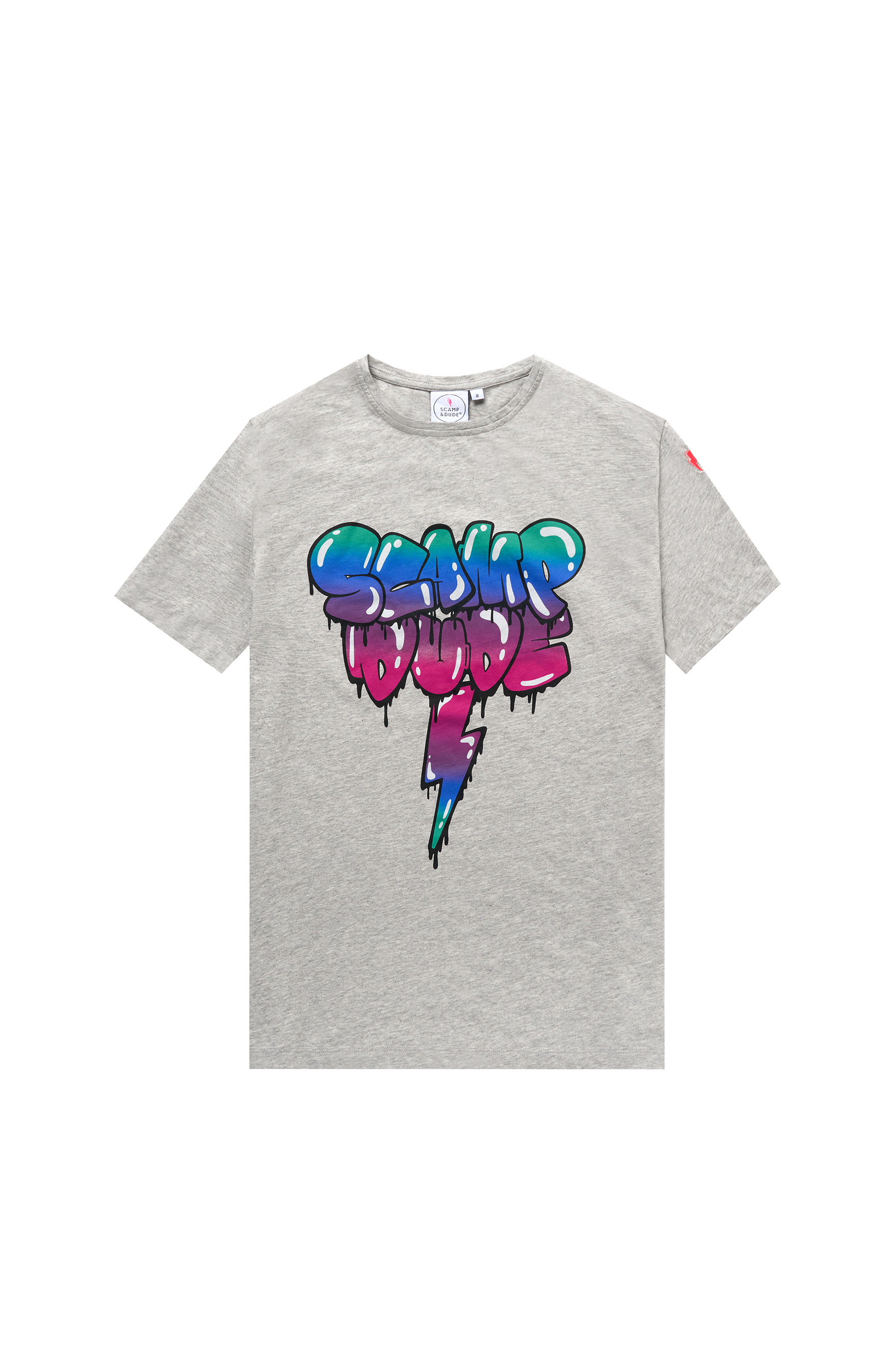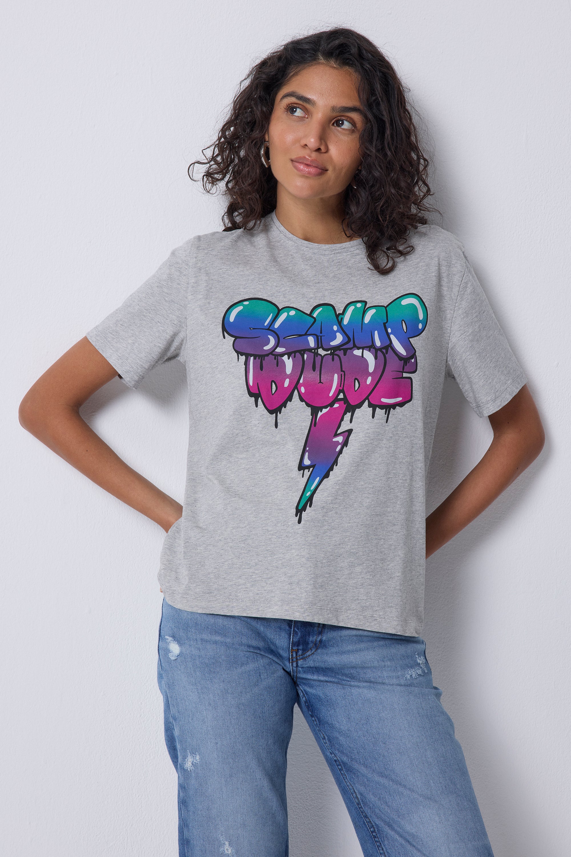 Our grey t-shirt with bubble graffiti slogan will become your off-duty staple. It's stylish, comfy and filled with superpowers. Complete the look with a pair of flattering Scamp & Dude jeans.