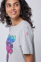 Grey Marl Bubble Graffiti Slogan T-Shirt